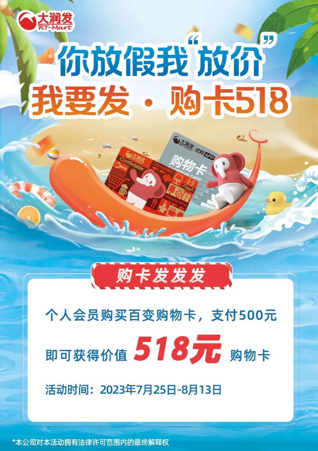 个人会员购买百变购物卡,支付500元即可获得价值518元购物卡一张
