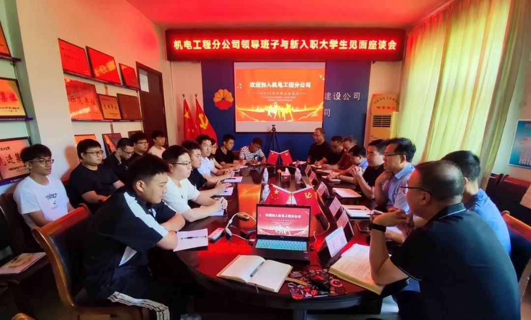 8月10日,机电工程分公司领导班子与新入职的12名大学生进行座谈交流,了解新员工家庭情况、兴趣爱好、入职培训以来的感受以及对未来工作的规划,解答大家对于技能提升、资质考证以及工作生活方面的问题。