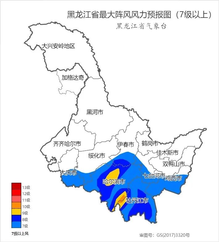 10日夜间至11日夜间为“卡努”主要降水时段,鹤岗东部、佳木斯西部、双鸭山西部、七台河、鸡西、牡丹江大部累计雨量为40~80毫米,其中鸡西西部、牡丹江东部局地90~110毫米,最大小时雨量20~40毫米,个别乡镇达60毫米以上。伊春南部、大庆南部、绥化南部、哈尔滨、佳木斯西部、鸡西、七台河、牡丹江有7~8级阵风,其中哈尔滨中部、牡丹江西南部局地9~10级。