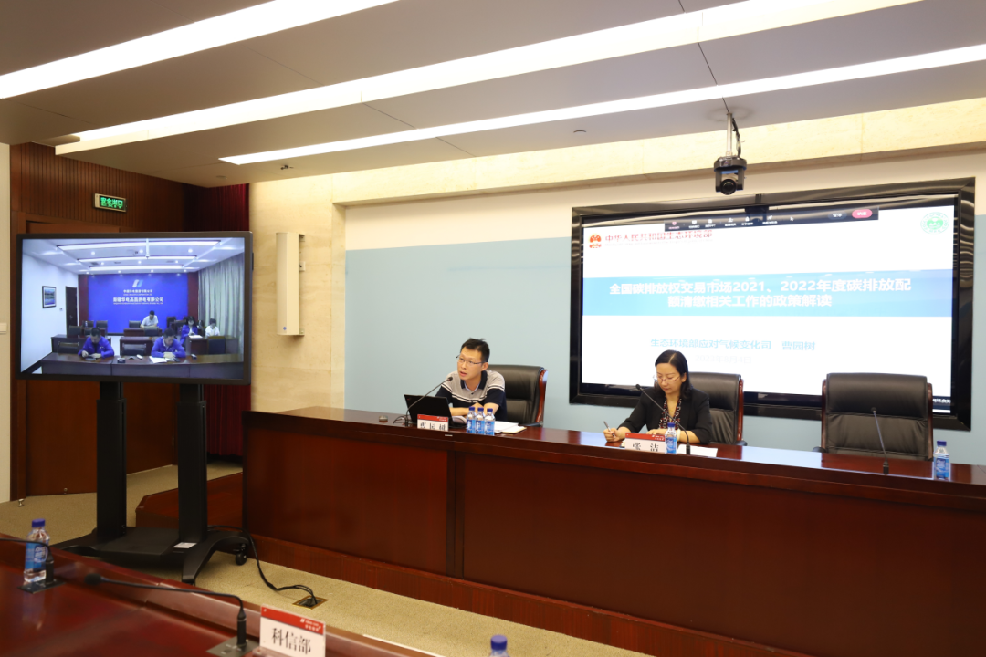 会上,生态环境部应对气候变化司有关同志从《通知》编制过程及背景、具体内容、个性化舒困方案电报、下一步工作考虑等方面对《诵知》进行宣贯和全面解读,对各单位提出的问题讲行答疑,进一步提高了各单位对履约法定责任的认识。华电碳资产专家对碳排放配额交易履约规则及注意事项进行详解,为切实做好全国碳市场第二个履约期配额清缴工作、提高交易履约能效打下坚实基。