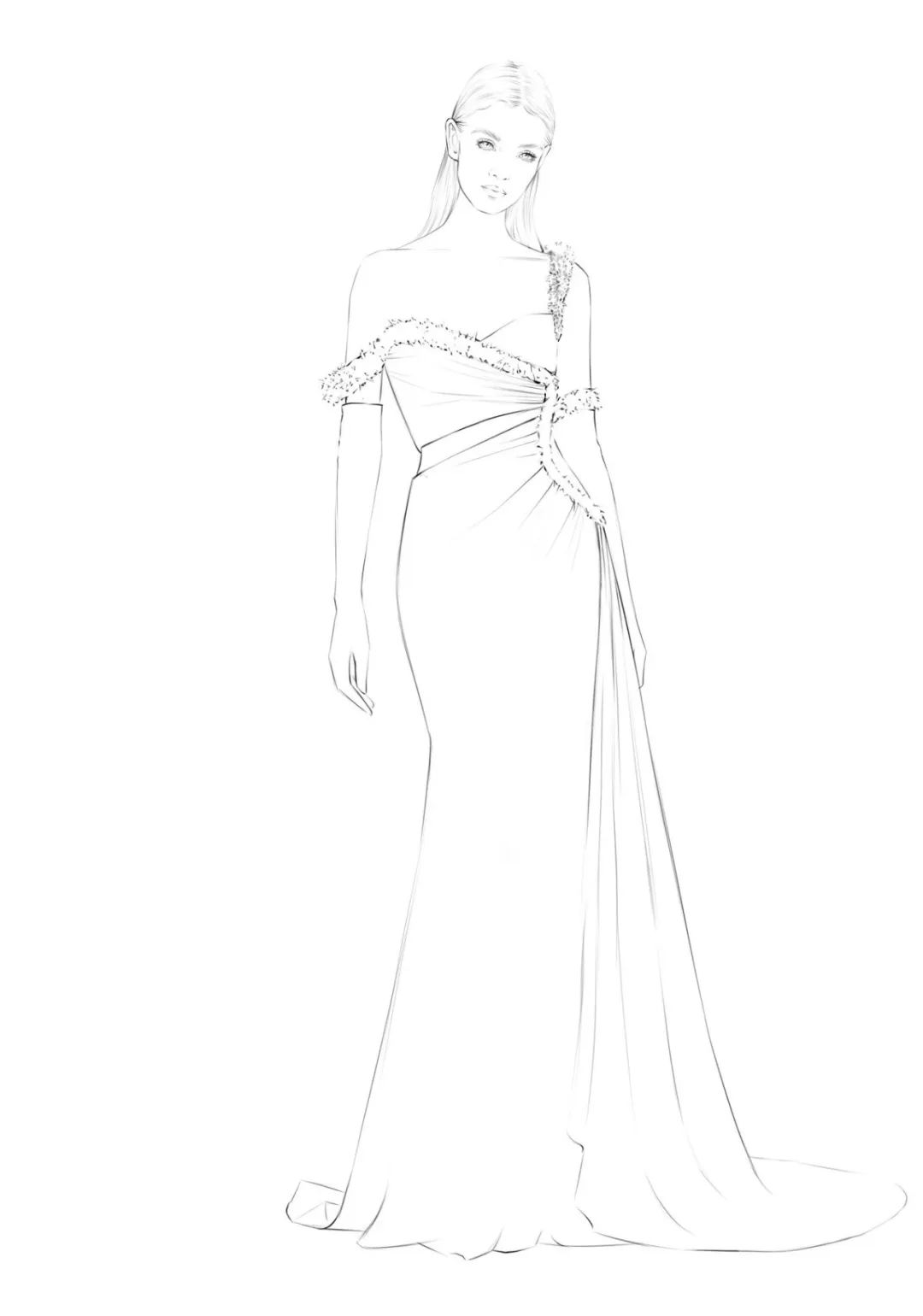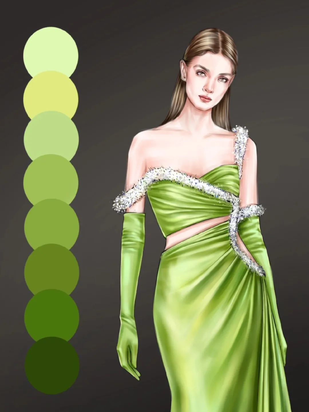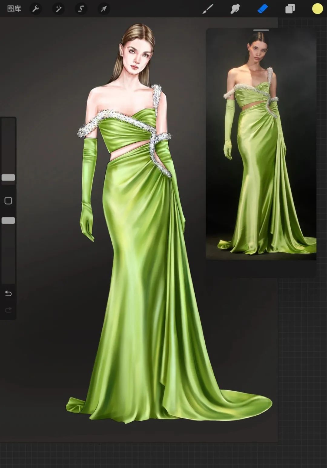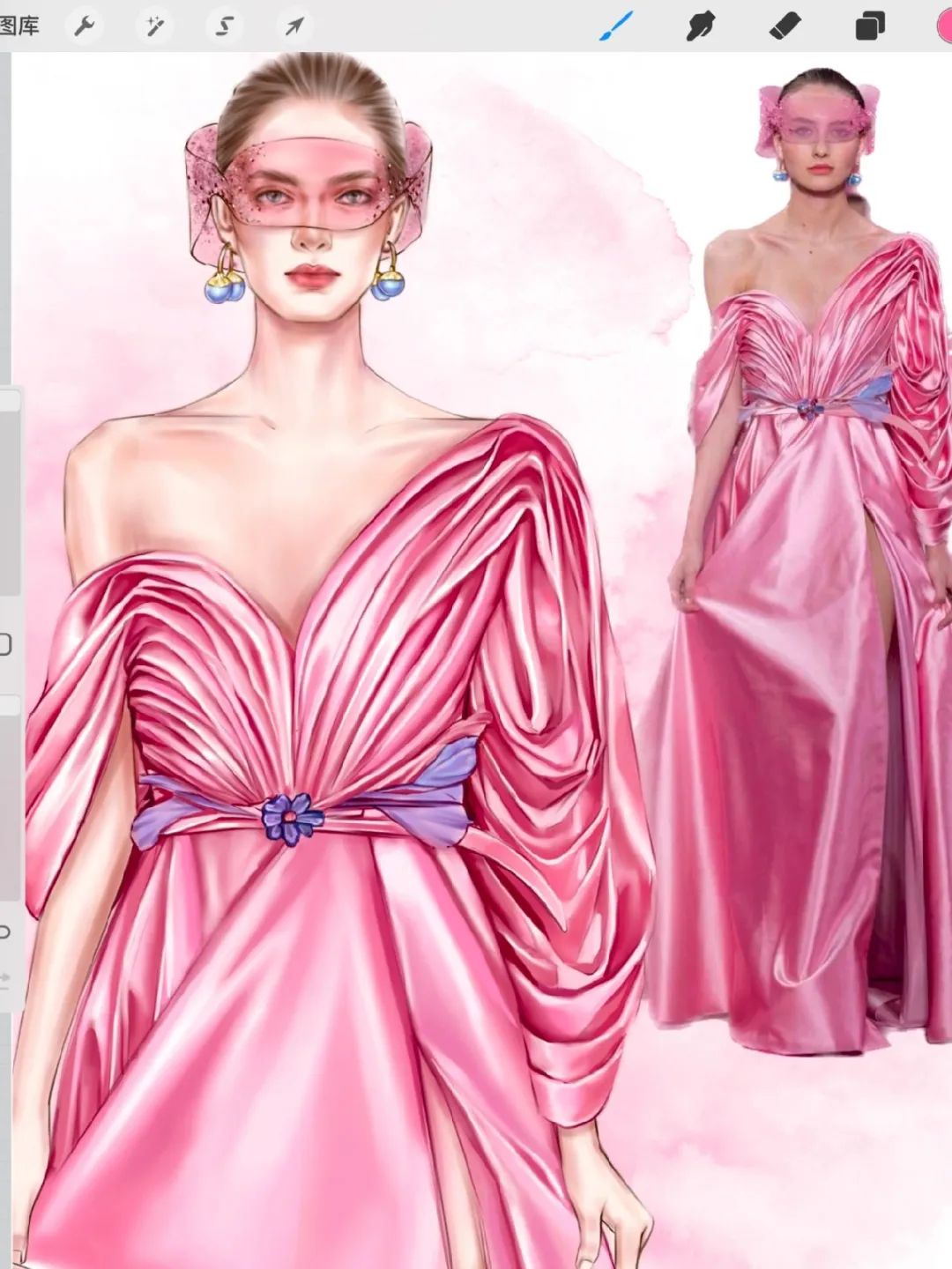【服装设计图——时装效果图】procreate时装画缎面礼服绘制步骤