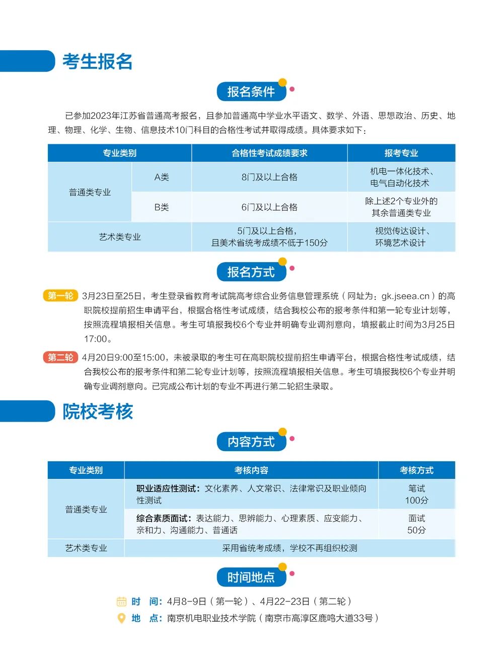 高职单招 | 南京机电职业技术学院2023年提前招生简章