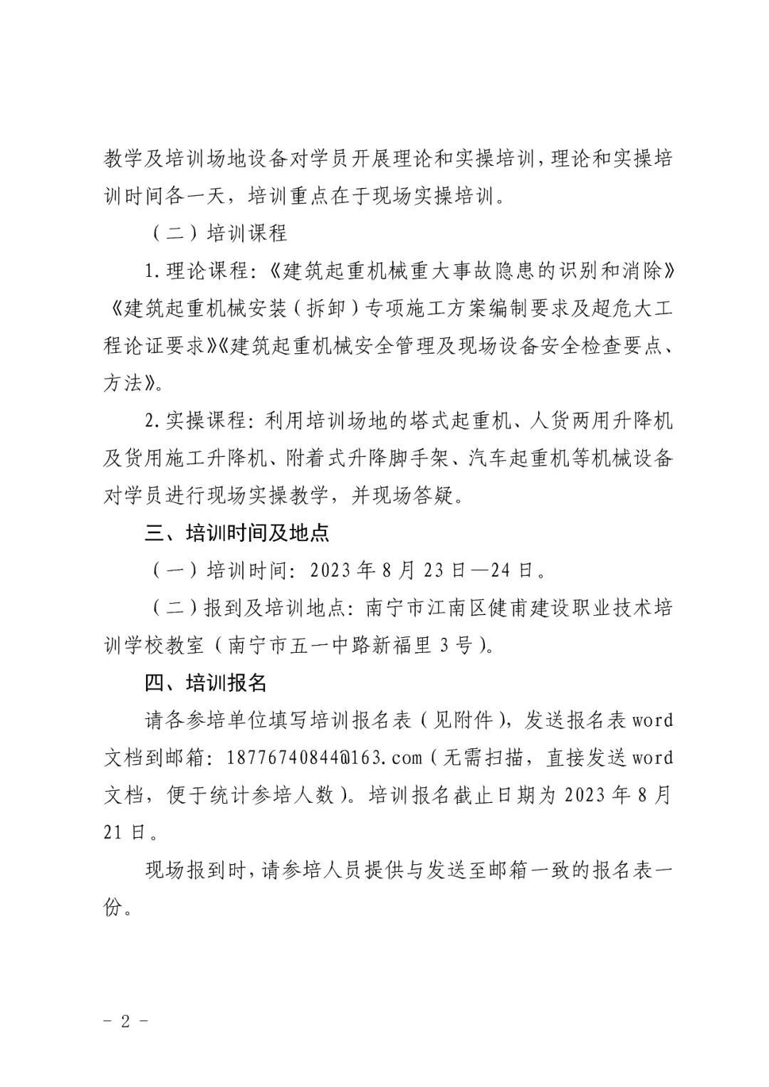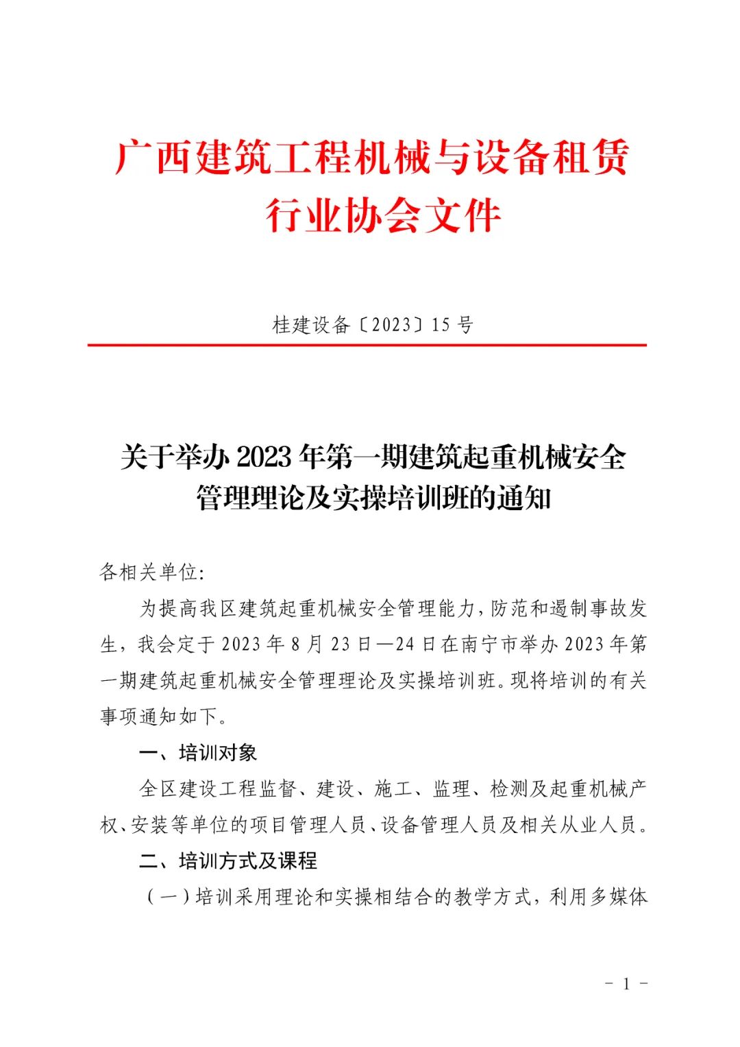 关于举办2023年第一期建筑起重机械安全管理理论及实操培训班的通知