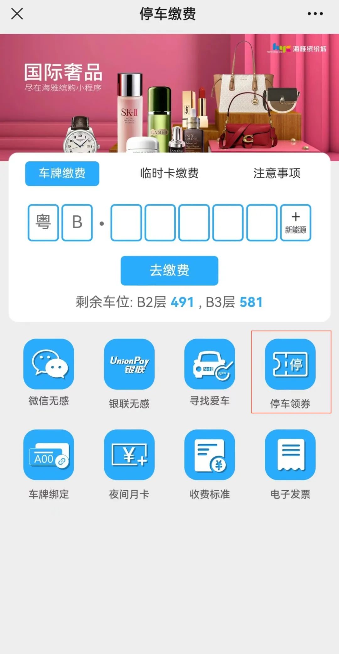如未成为会员或者未成功积分导致未推送停车券,请持当日消费小票到L1客服台办理停车减免。