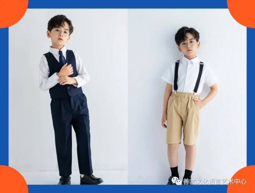 款式:服装颜色一定贴合孩子的肤色,显白为主。颜色不要过于冷门,能够在大多数场合出现。整体款式大方、绅士。夏天,短裤短袖类正装也可以选择。