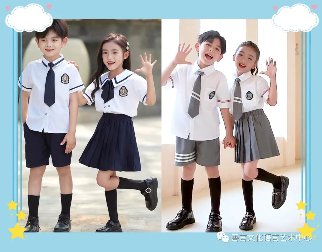 款式:学院风制服整体风格青春阳光,轻松自在,符合孩子们的年龄状态。选择时,一定要根据孩子的气质、肤色进行选择,避免选择领部宽大、夸张的款式。