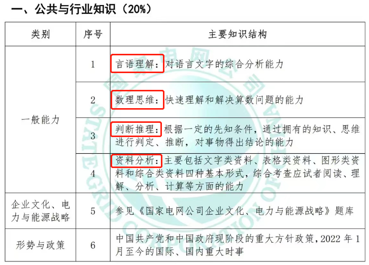 在笔试的公共与行业知识部分,里面包含了一般能力,也就是我们常说的行测,另外还有企业文化、电力与能源战略及形式与政策。