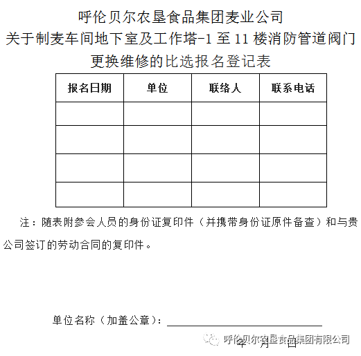 (二)报名地点:呼伦贝尔农垦食品麦业有限公司。