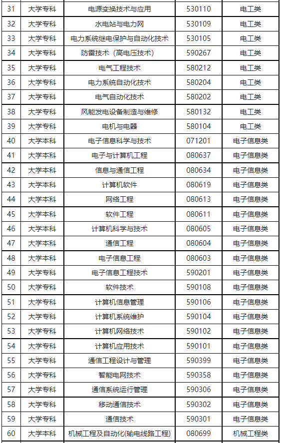 电工类、电子信息类、机械工程类、热能动力类、自动化类、土建类等专业大学专科及以上学历,财务类专业研究生学历,具有军队服役经历者优先考虑,以上学历和专业以全日制最高学历、主修专业为准,具体如下。