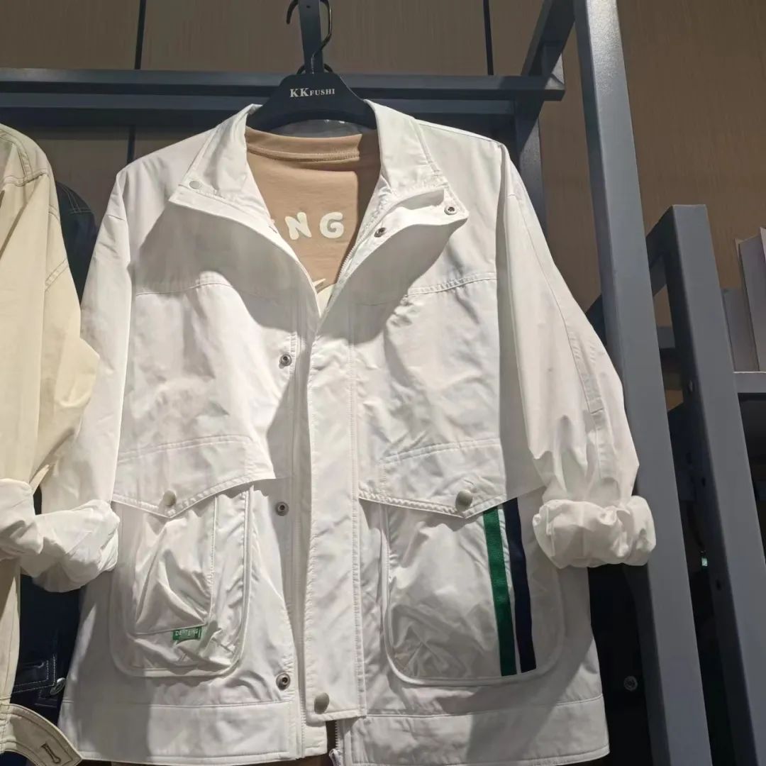 kk男士泡泡纱短款翻领夹克有黑色,米色价位299元