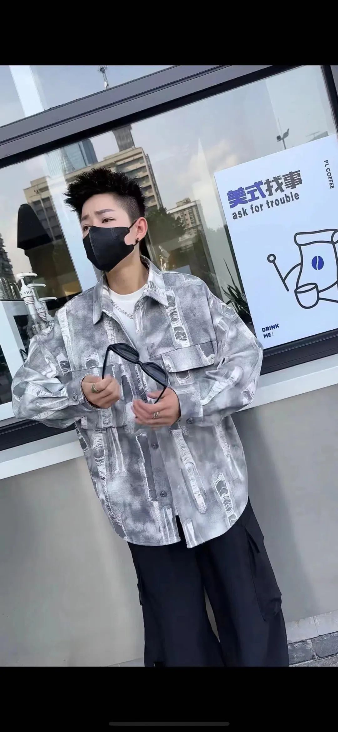 扎染牛仔外套男士韩版潮流宽松休闲款