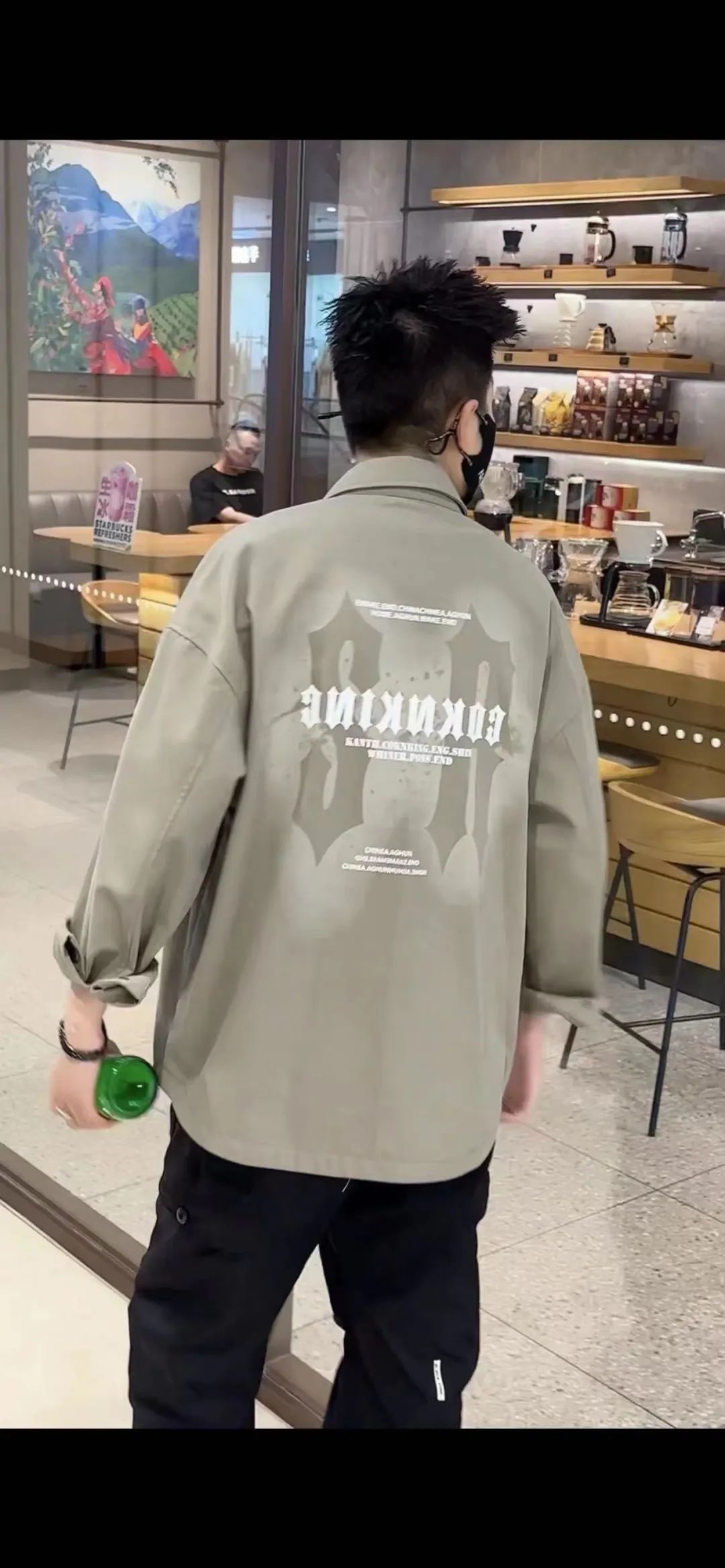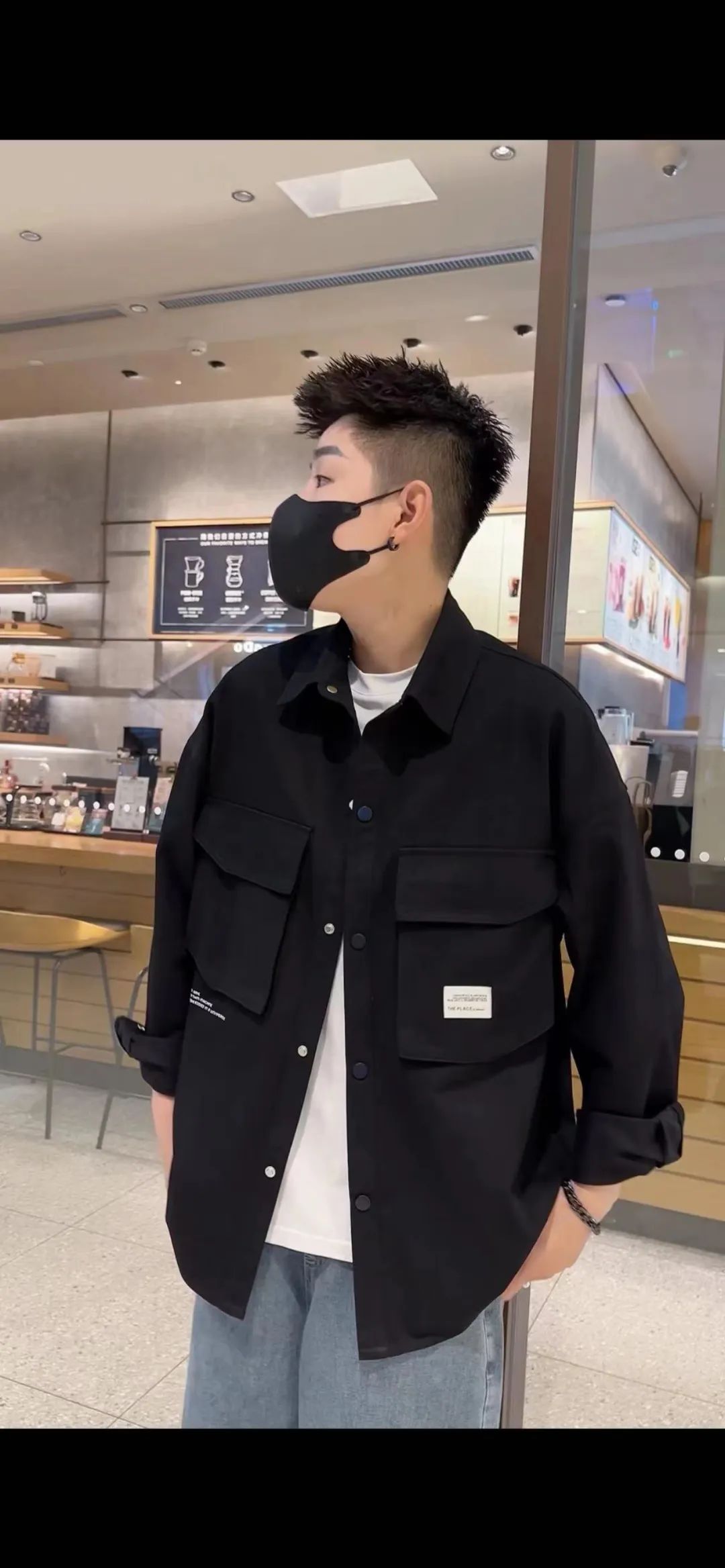2023年秋季新款潮牌翻领衬衫夹克长袖外套上衣