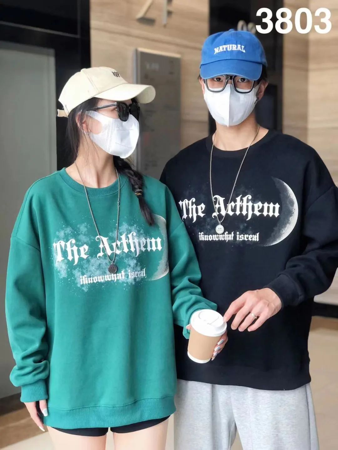 男女秋季新款圆领卫衣简约字母宽松情侣款