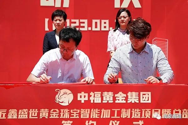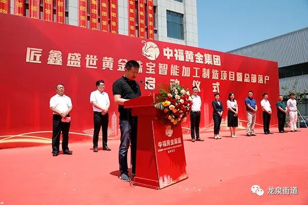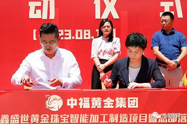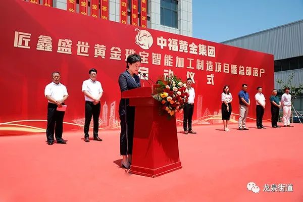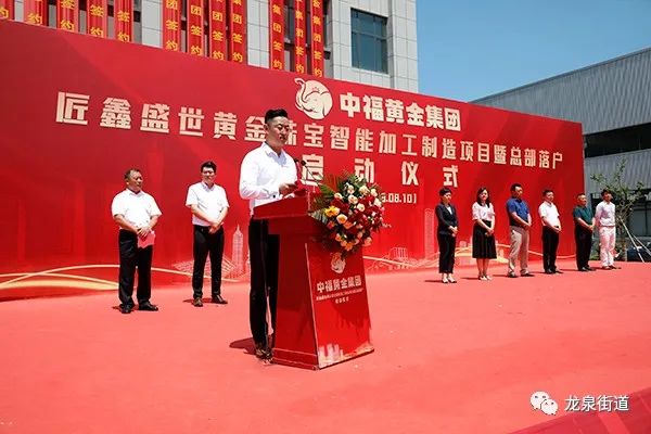 8月10日上午,中福黄金集团匠鑫盛世黄金珠宝智能加工制造项目暨总部落户启动仪式举行。龙泉街道党工委副书记、办事处主任张维维,便民服务中心主任褚瑞,相关部门负责人,项目单位代表参加活动。