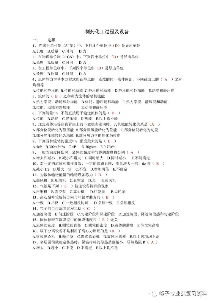 关于制药化工过程与设备的一些复习资料,都在这里了!