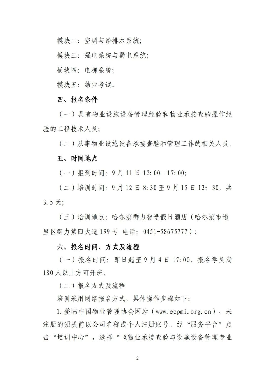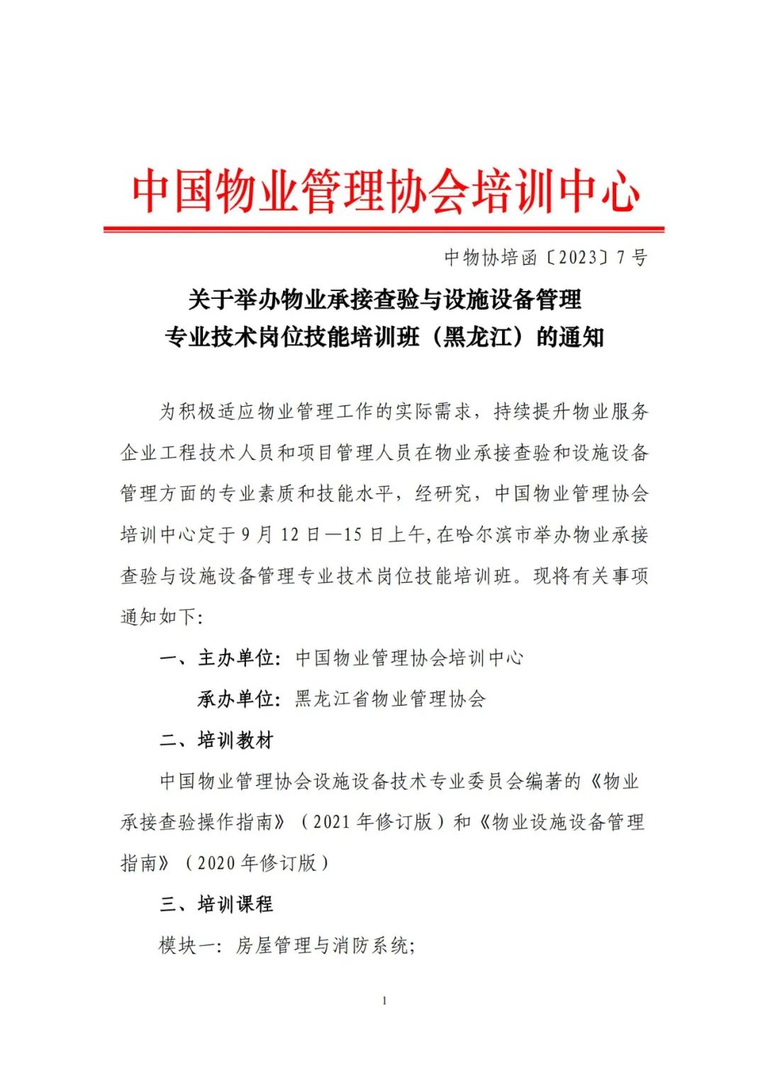 关于举办物业承接查验与设施设备管理专业技术岗位技能培训班(黑龙江)的通知