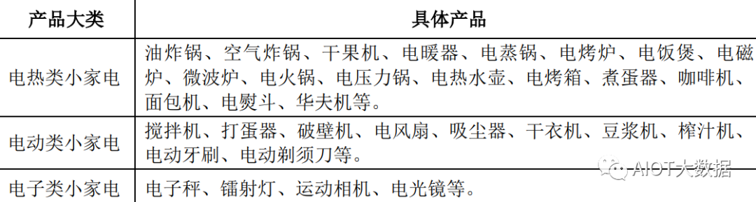 小家电产品按功能可划分为厨房小家电、家居小家电和个人护理小家电,厨房小家电主要应用于厨房场景中,实现蒸煮炸煎炒烹等功能;家居小家电主要帮助人们缩短家务劳动时间、改善家居环境、清洁卫生等;个人护理小家电主要应用于个人清洁、健康、护理等场景。