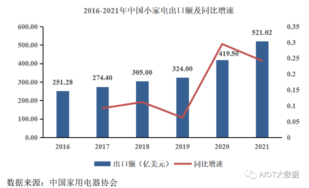 近年来,随着全球经济的不断发展以及消费结构的改变,人们为了追求更高的生活质量,对于小家电的需求量也不断上升,推动了全球小家电行业的发展。2020年、2021年以来,受海外居家潮、“宅经济”盛行影响,海外市场特别是欧美市场对小家电的需求出现透支型快速增长,进而带动全球小家电市场需求增长。