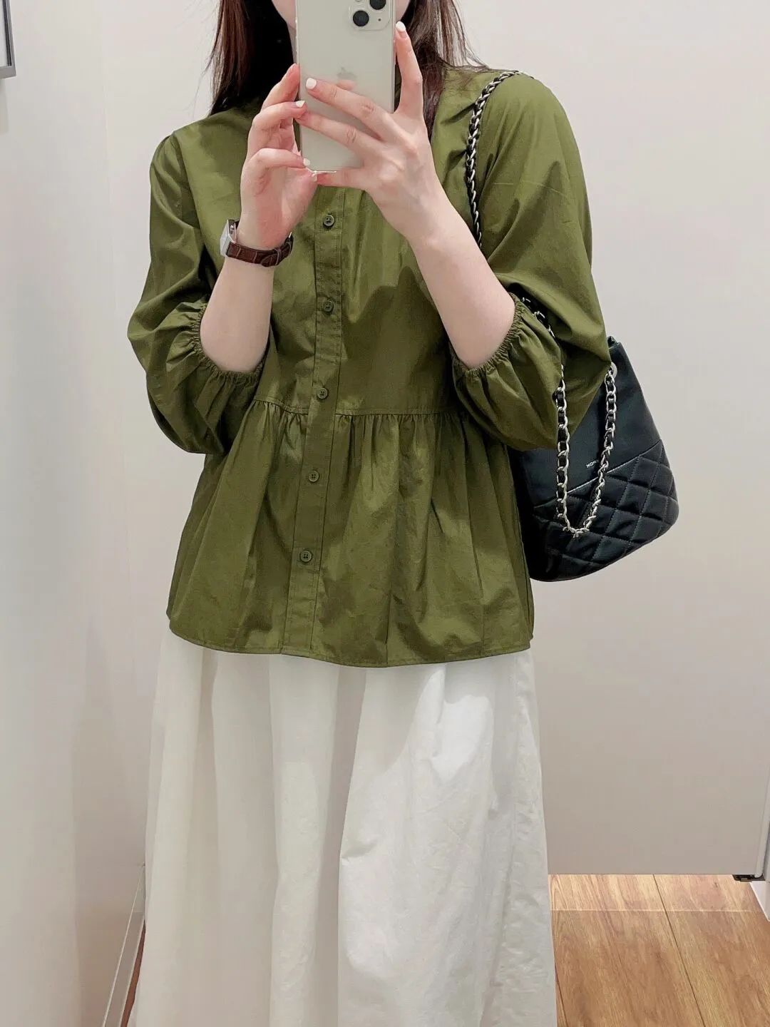 稀缺❗️品质真的好?巨巨巨好看!品质拉满!吹爆它?アガット池袋東武娃娃款七分袖衬衫!!又一王者单品?率性十足的通勤风格,万能百搭的衬衫,超舒服!我的本命衬衫?秒变魅力女人100%棉面料,这品质,这价格,是真心便宜,吊打一切市场货!?专柜同步三色:浅米色、藏青色、橄榄色?尺码S-XL(适合任意身型的姐妹)
