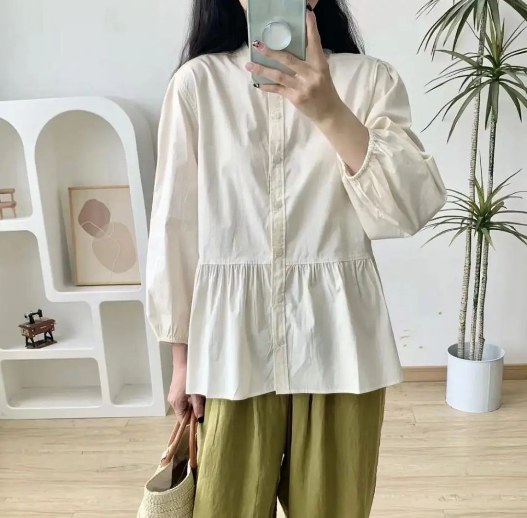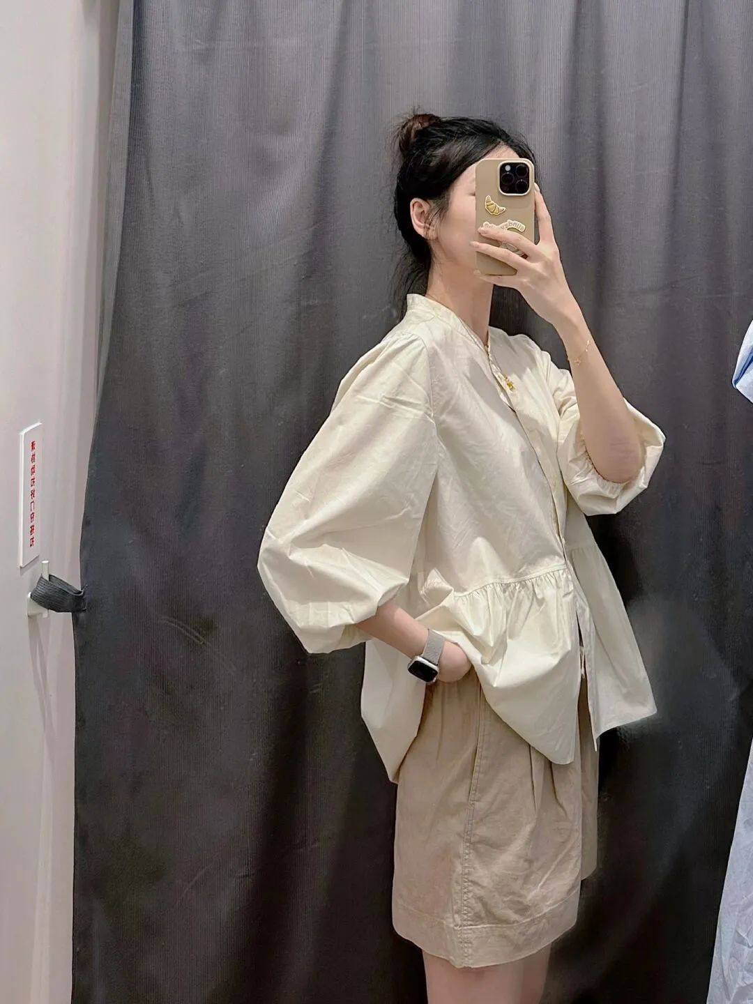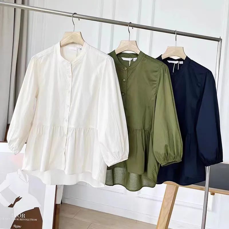 【日本东武百货自营品牌】高端实体专卖‼️東武娃娃款七分袖衬衫!! 高品质100%棉面料,亲肤柔软,透气不闷汗,面料垂感十足!驾驭各种身型,衬衫立体挺括不易皱好打理,三个纯色配色简约高级,上班通勤,逛街休闲,可盐可甜