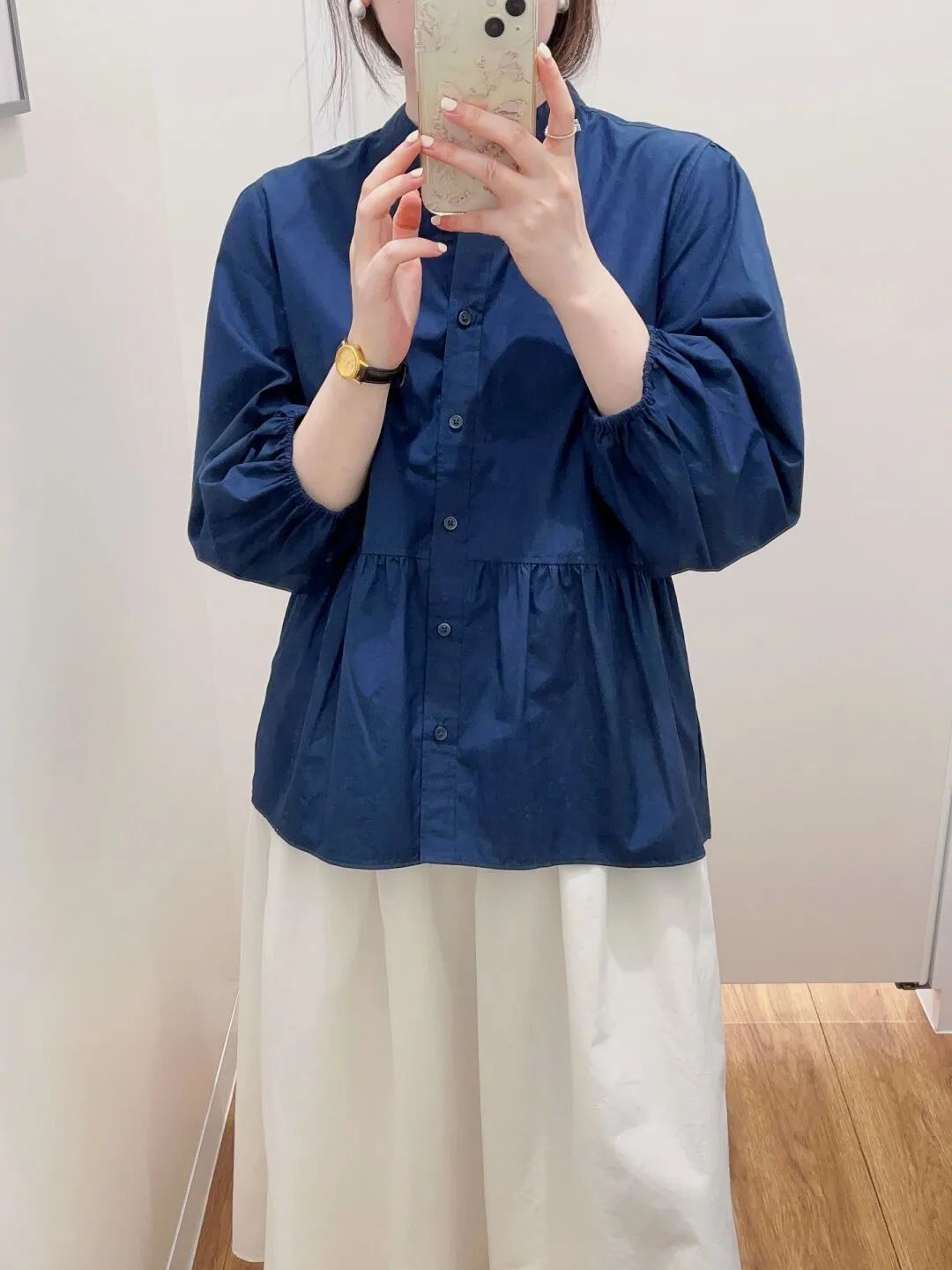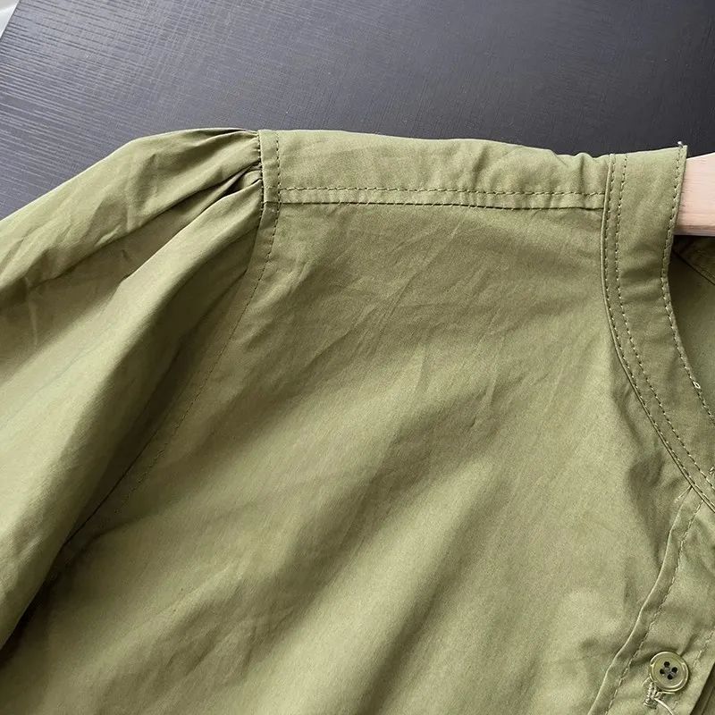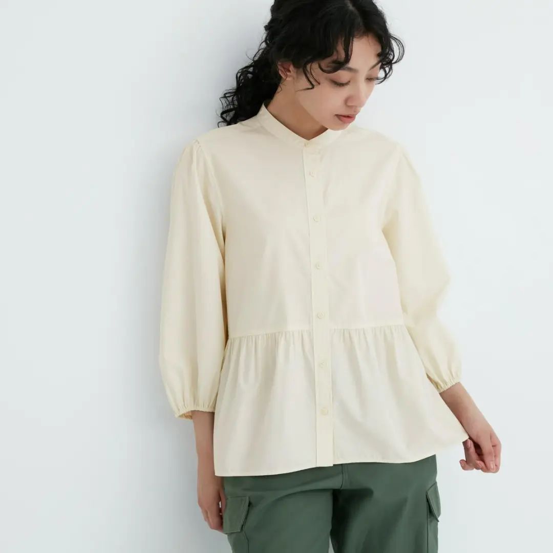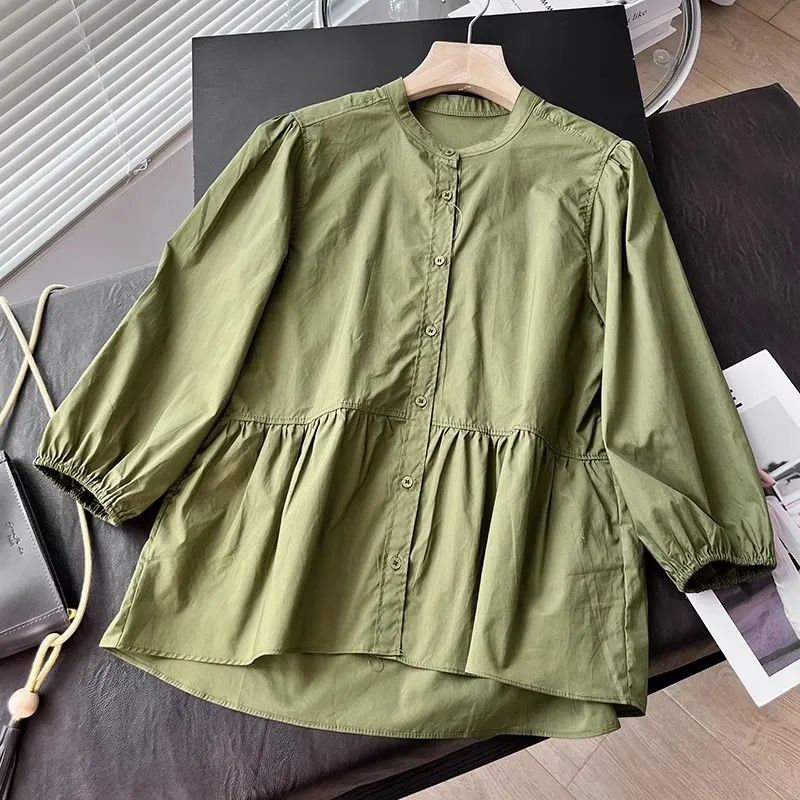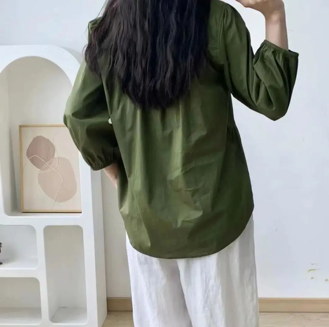 【商品名称】アガット池袋東武娃娃款七分袖衬衫【颜色】浅米色 藏青色 橄榄色【尺码】S M L XL【材质】100%棉