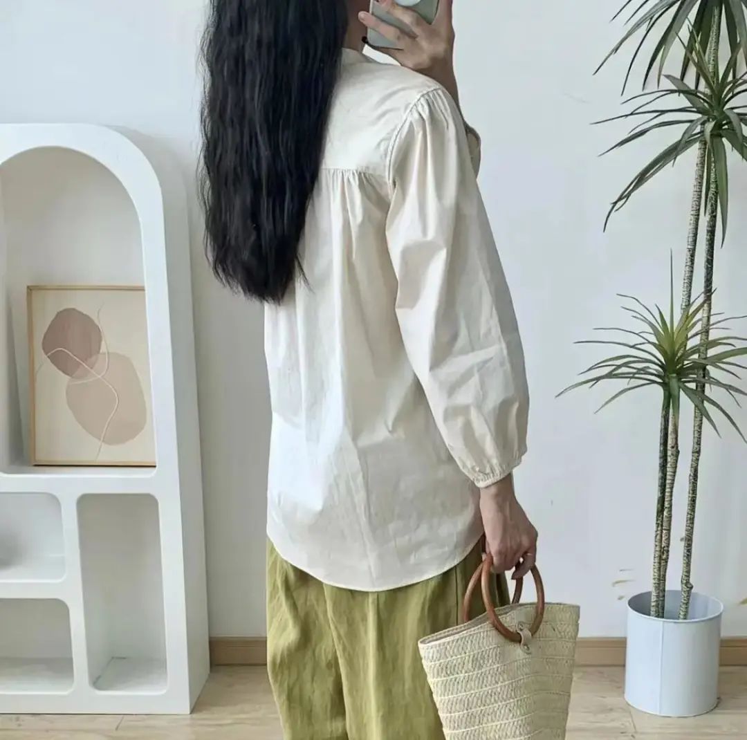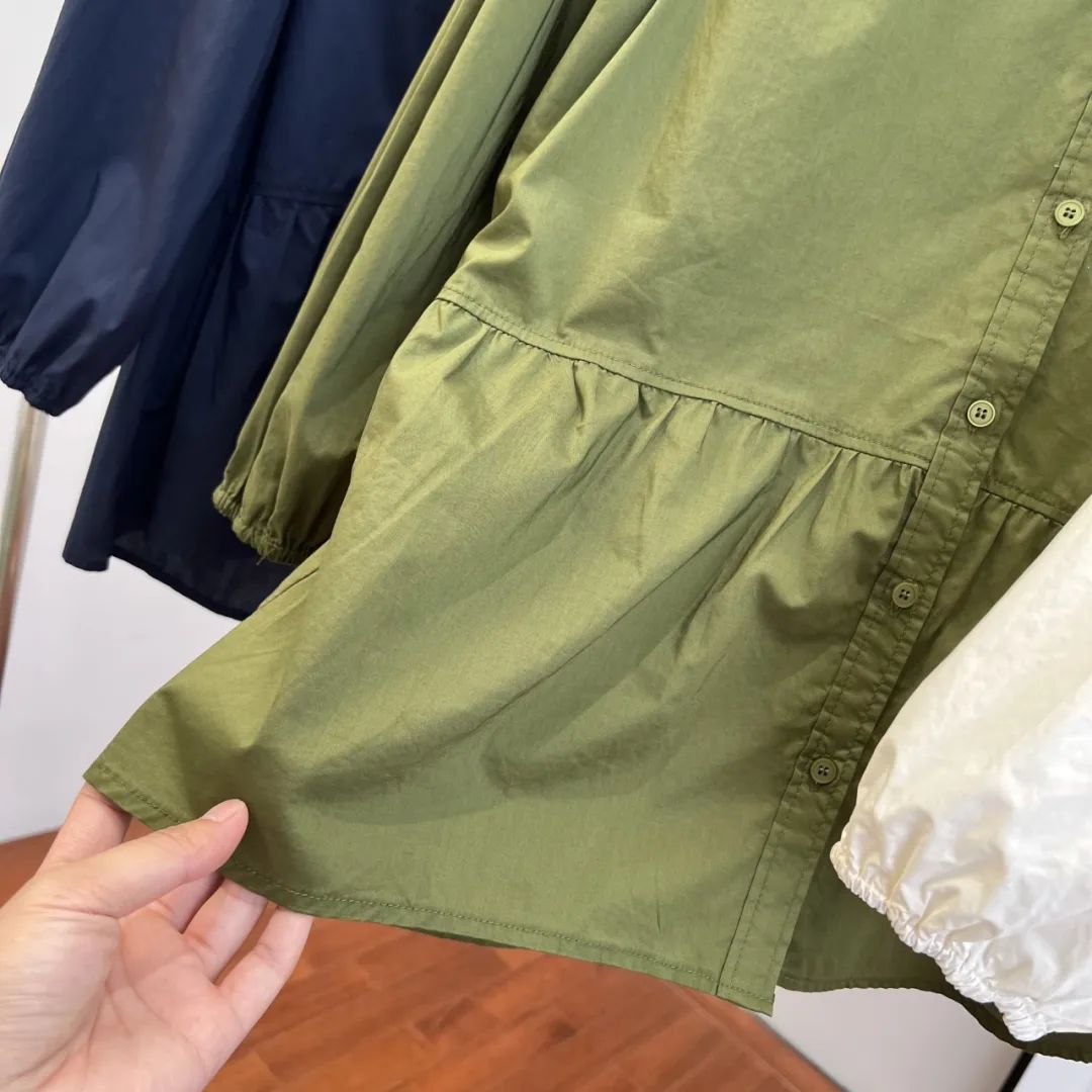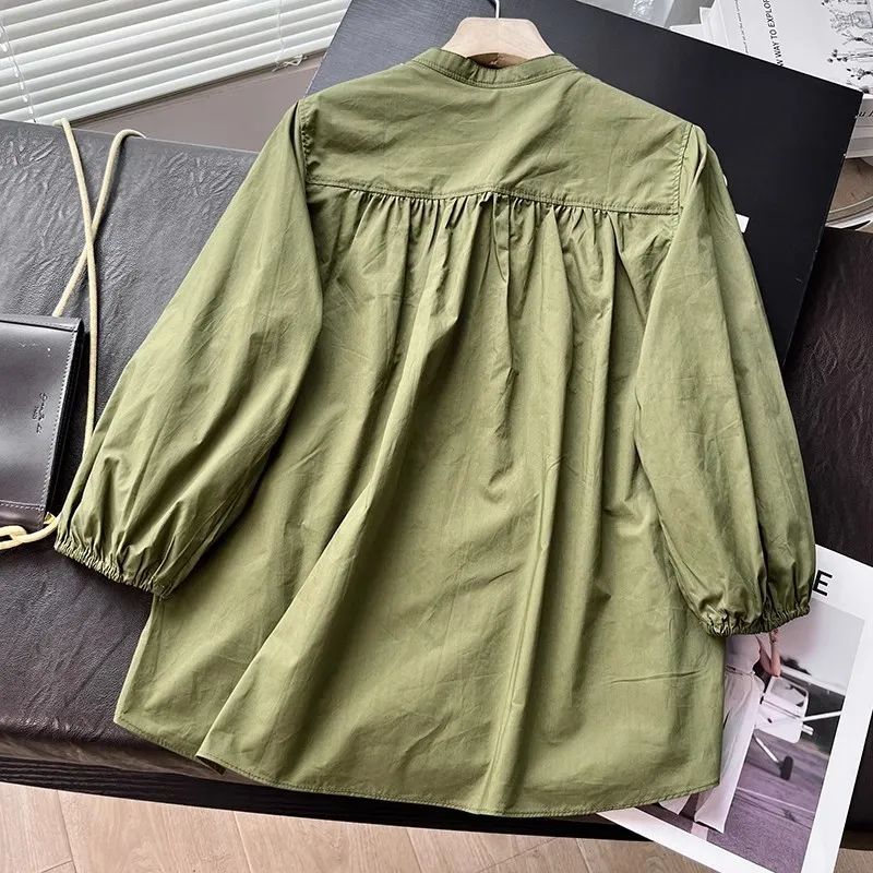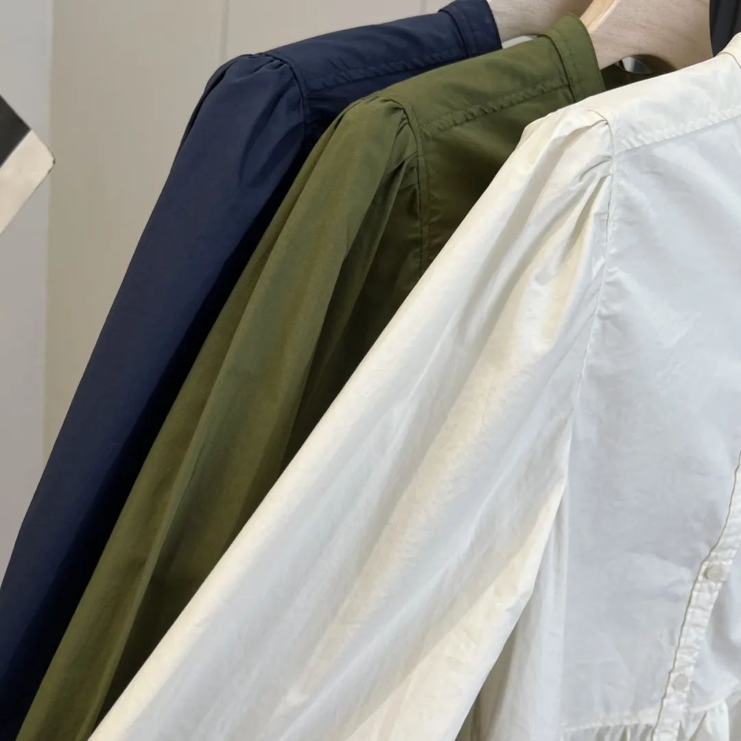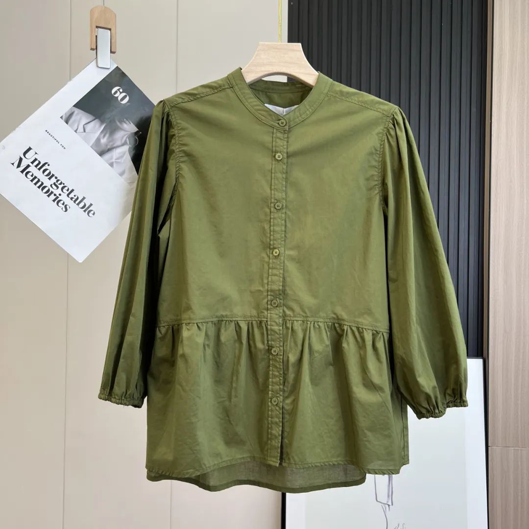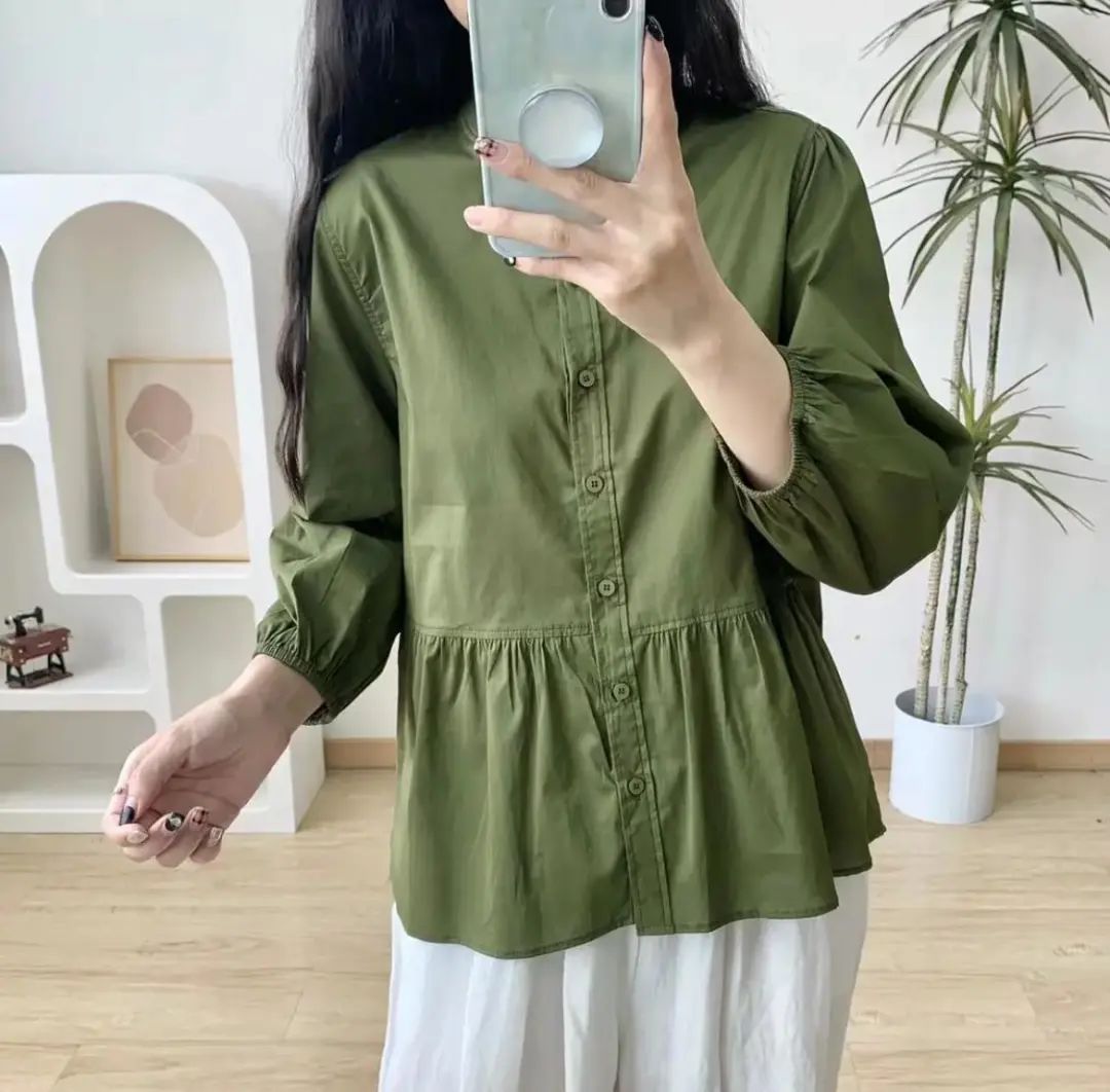 【商品名称】アガット池袋東武娃娃款七分袖衬衫【颜色】浅米色 藏青色 橄榄色【尺码】S M L XL【材质】100%棉