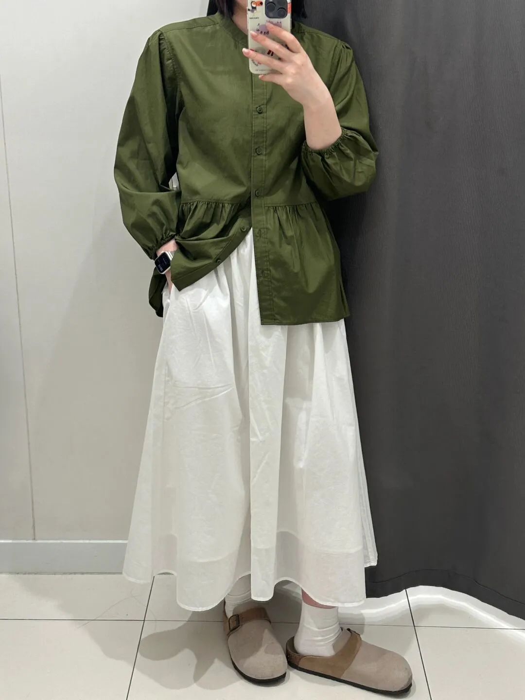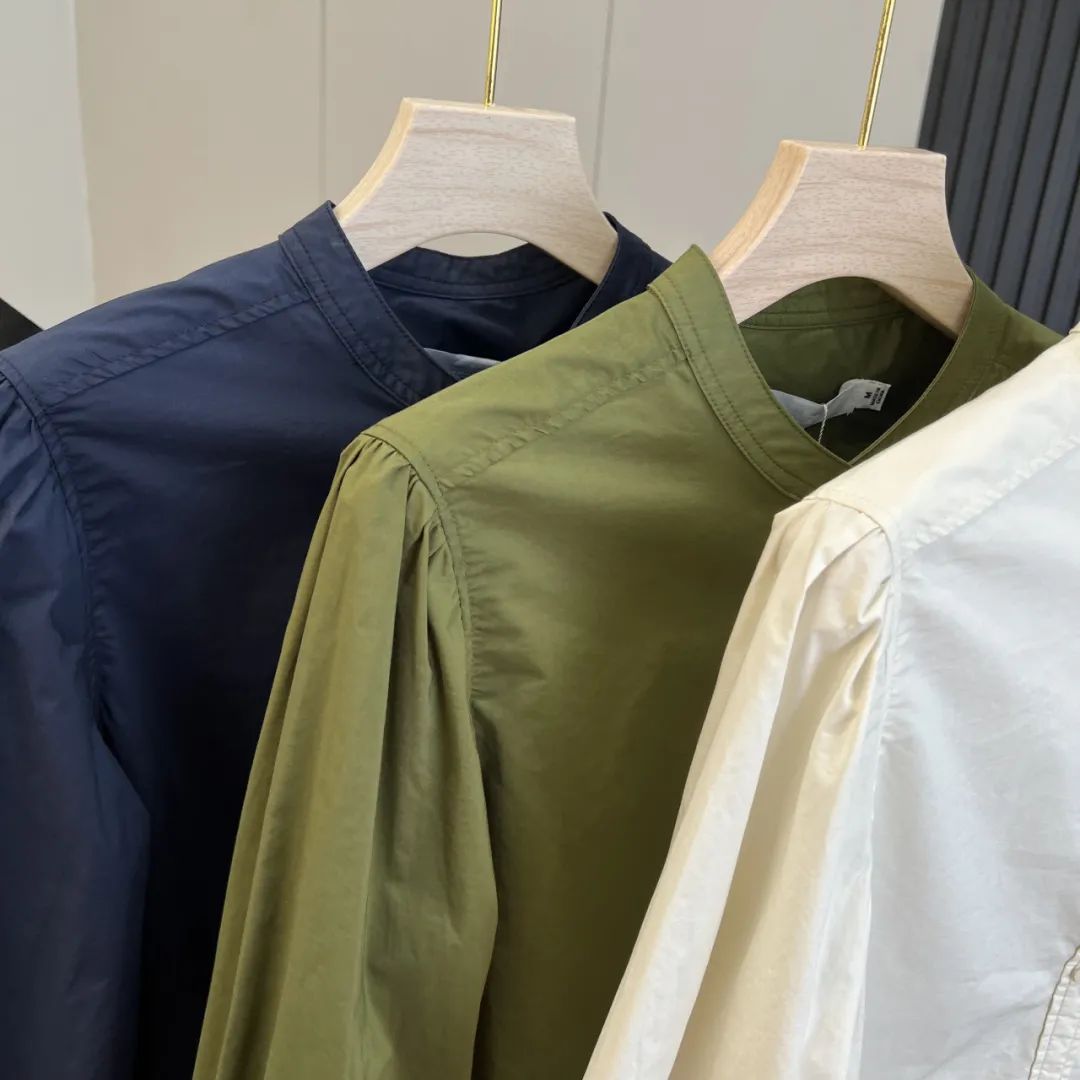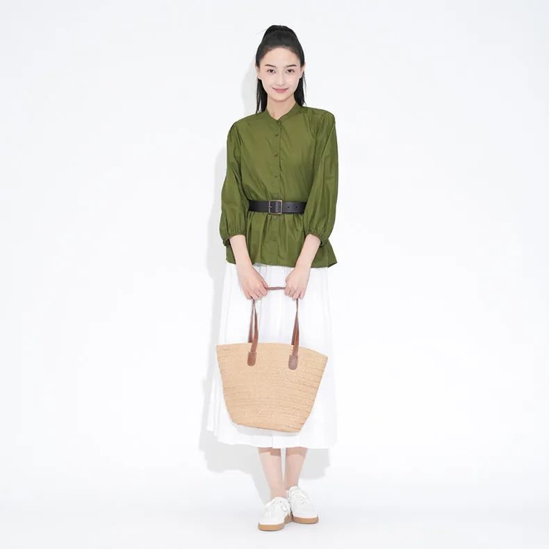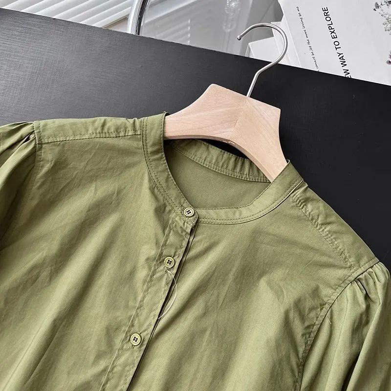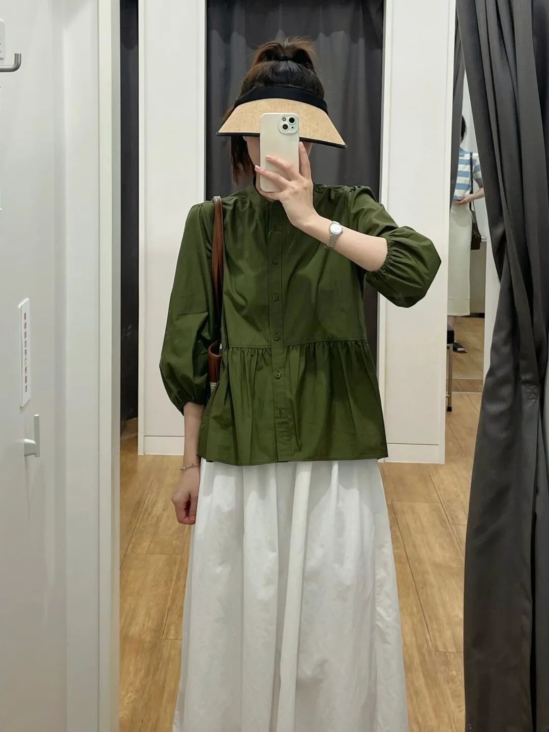 【商品名称】アガット池袋東武娃娃款七分袖衬衫【颜色】浅米色 藏青色 橄榄色【尺码】S M L XL【材质】100%棉