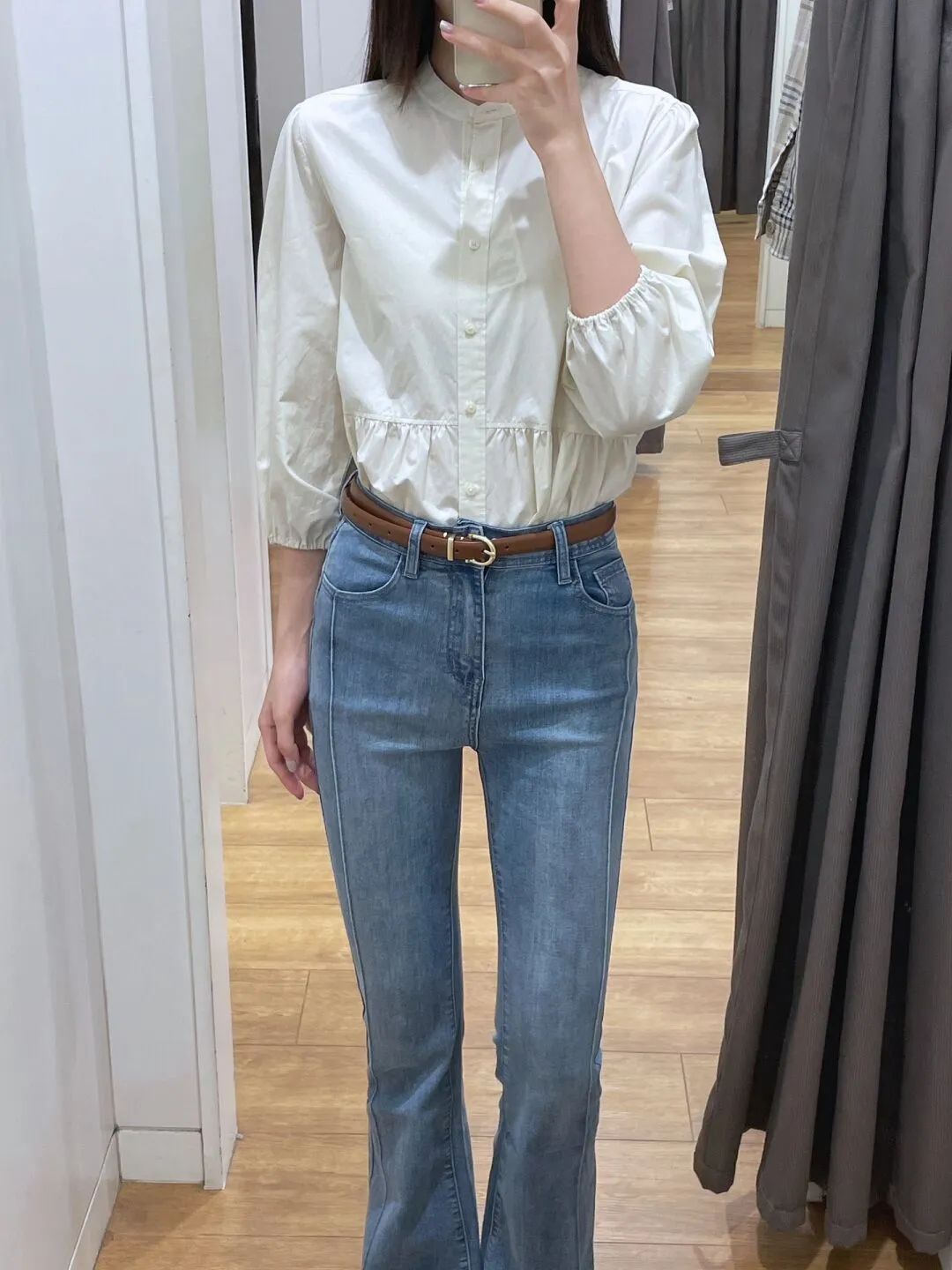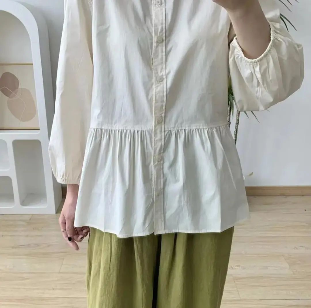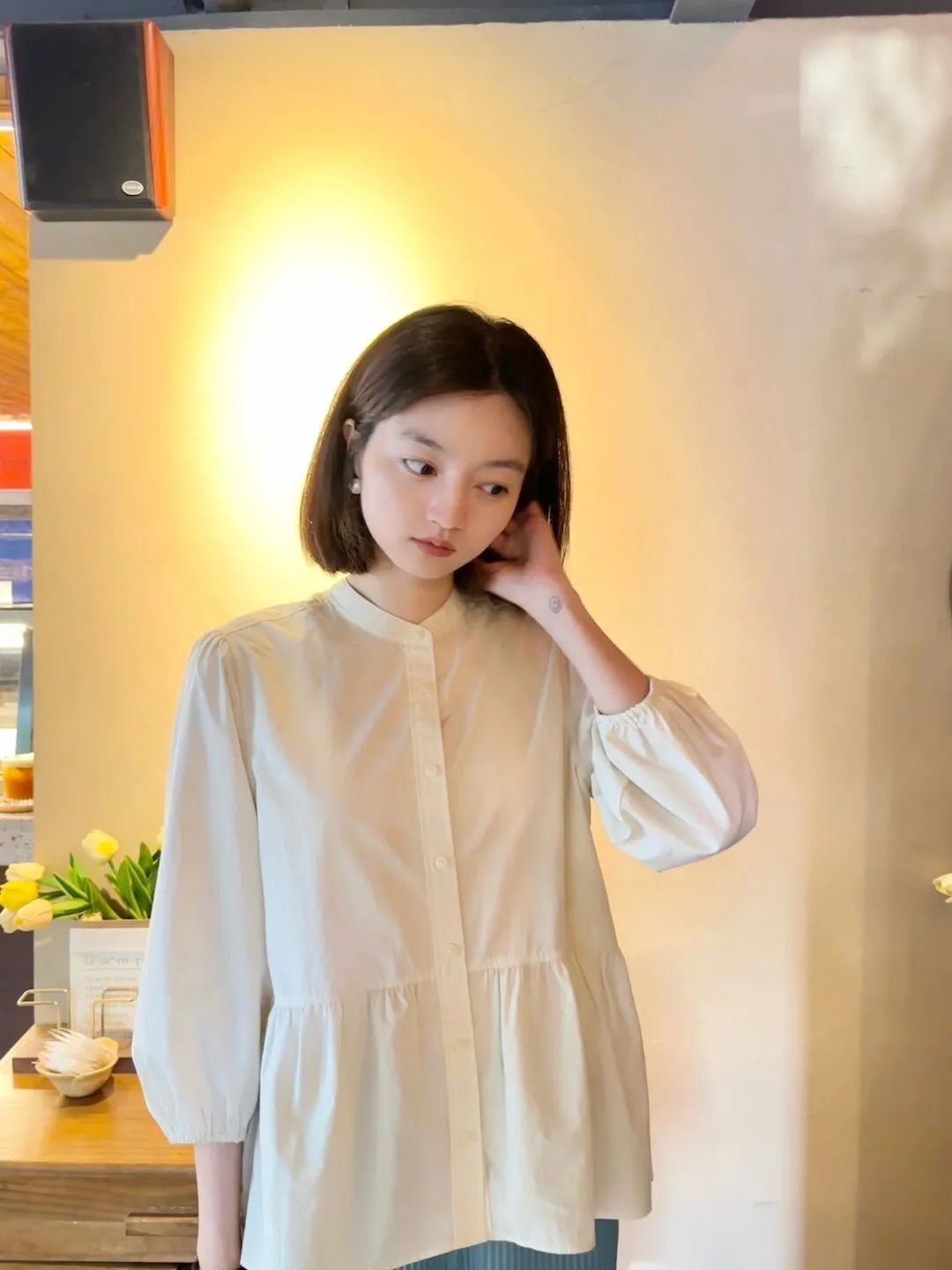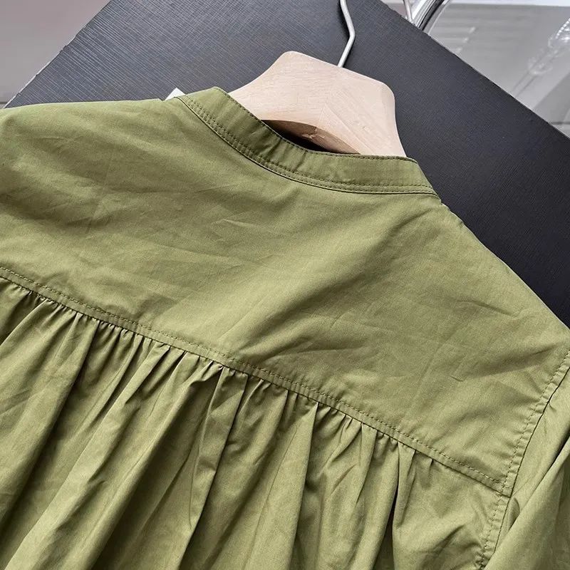 ✅面料:100%棉面料,亲肤柔软,透气不闷汗,面料垂感十足!夏天最爱的面料,才能有这种亲肤爽滑的感觉啊~✅版型:自然垂落版型,凸显腰线,宽松版型,有肉的身材也能轻松驾驭出来✅设计:?小立领通勤衬衫,气质妥妥的拿捏住?正肩设计,修饰肩型,无敌显瘦!?腰间打褶设计,增添层次感,减龄别致!?七分袖设计+松紧打褶袖口,遮手臂肉肉,还可以防晒哦!夏天穿腻了短袖,这件衬衫必入日常 通勤,你想要什么风格,它都能搭配出来,实用性超高