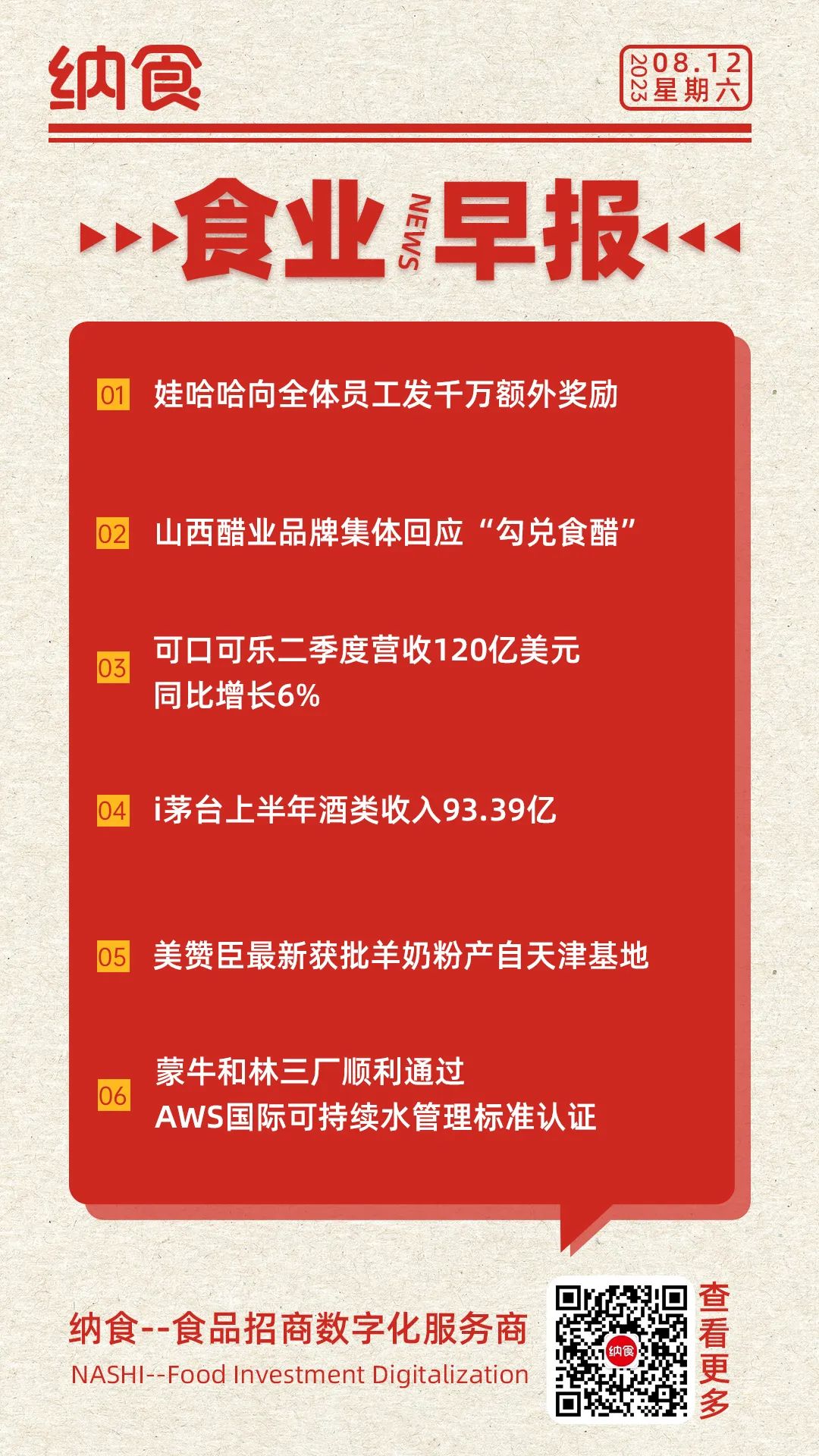 日前,因娃哈哈上半年增长,其董事长宗庆后向集团全体员工发放额外奖励,总金额超千万。娃哈哈相关负责人透露,目前所有奖金均已发放,董事长和总经理希望将国家给予民营企业的支持和信心传递给所有员工。(小食代)