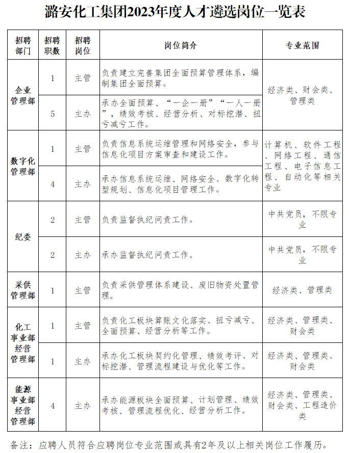 4.主管岗位,须具有集团备案的主管级(含主任师级)任职经历;主办岗位,须具有助理级及以上相关专业技术职称。