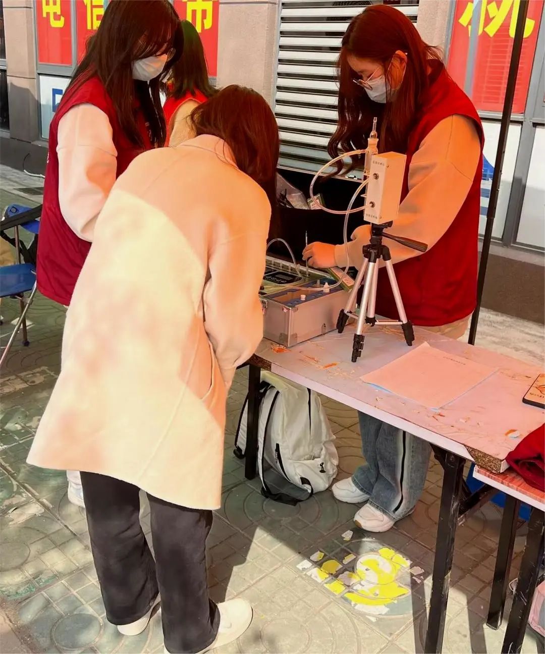 · 小组成员向居民展示仪器使用方法