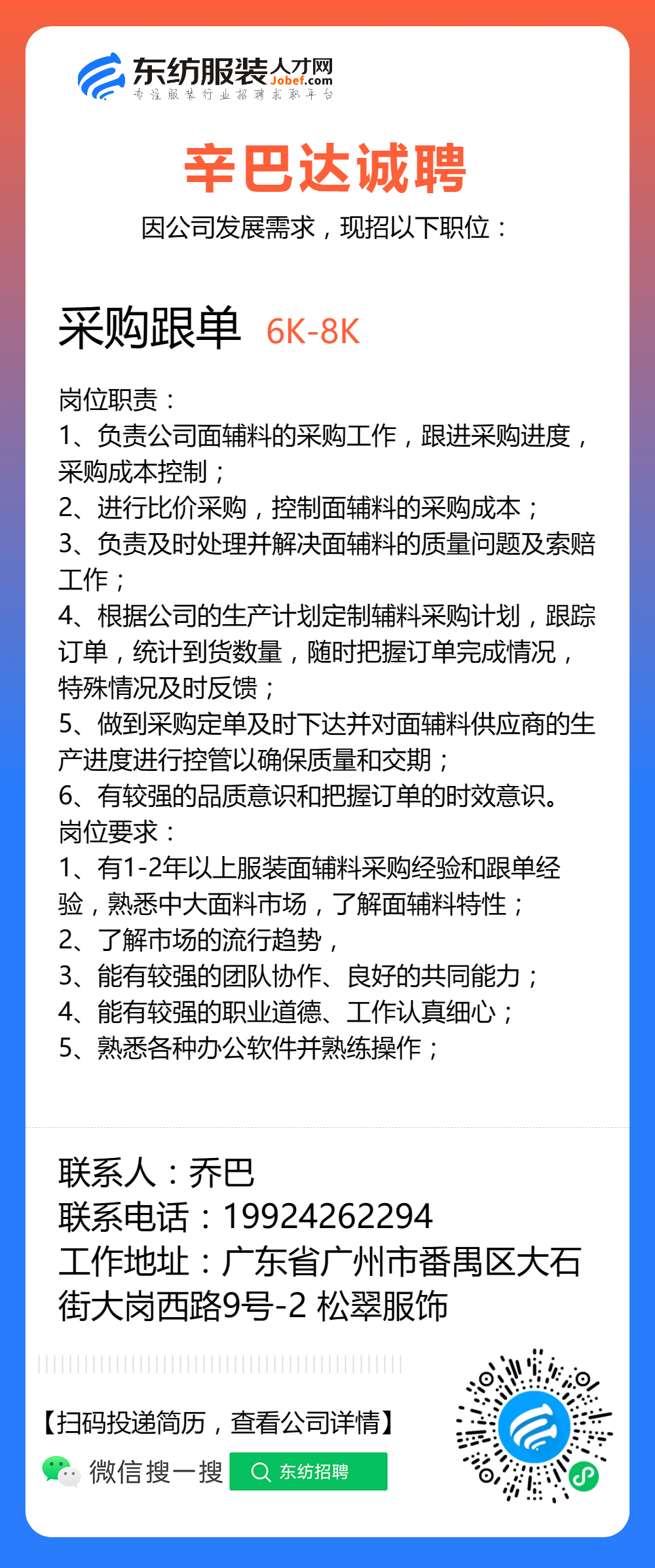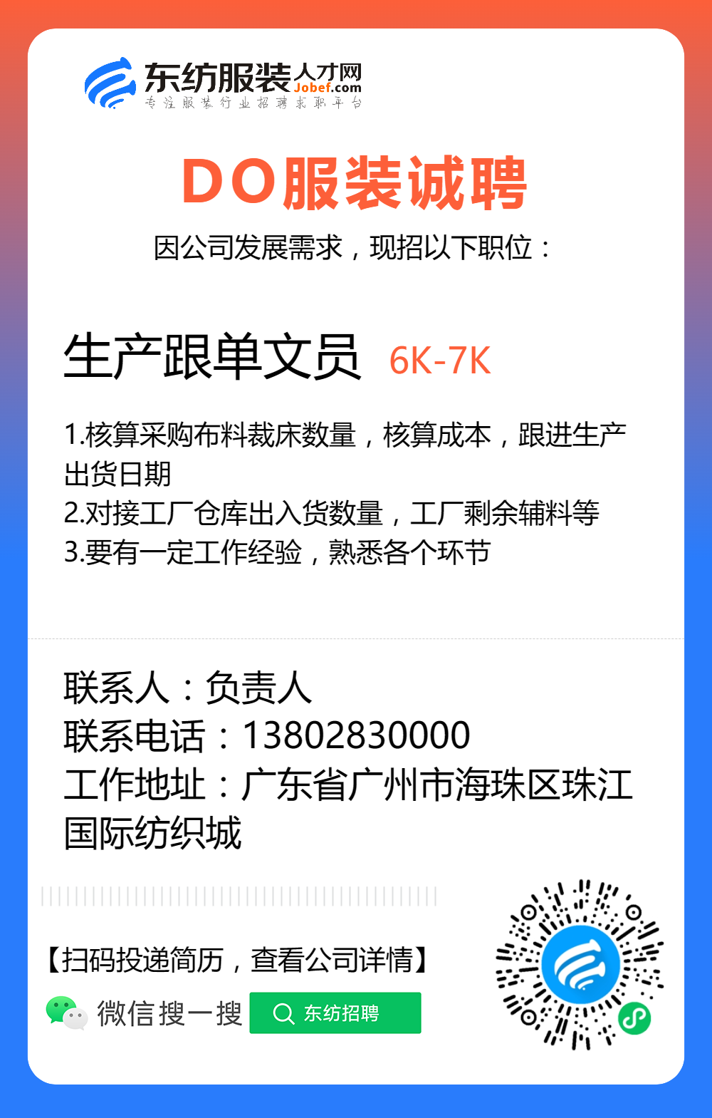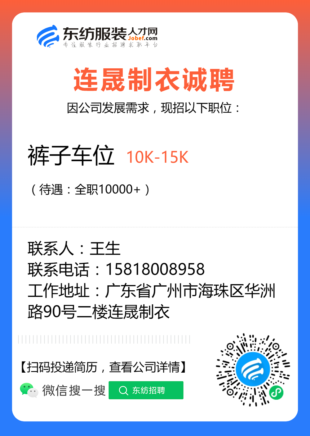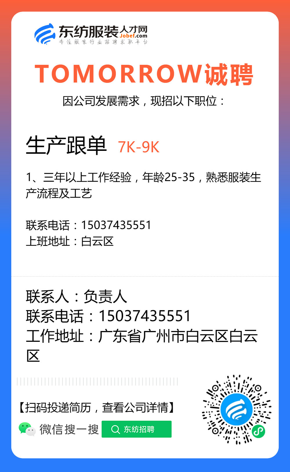 服装招聘·工厂类丨8. 12 号,跟单、采购、车位、裁床、尾部……