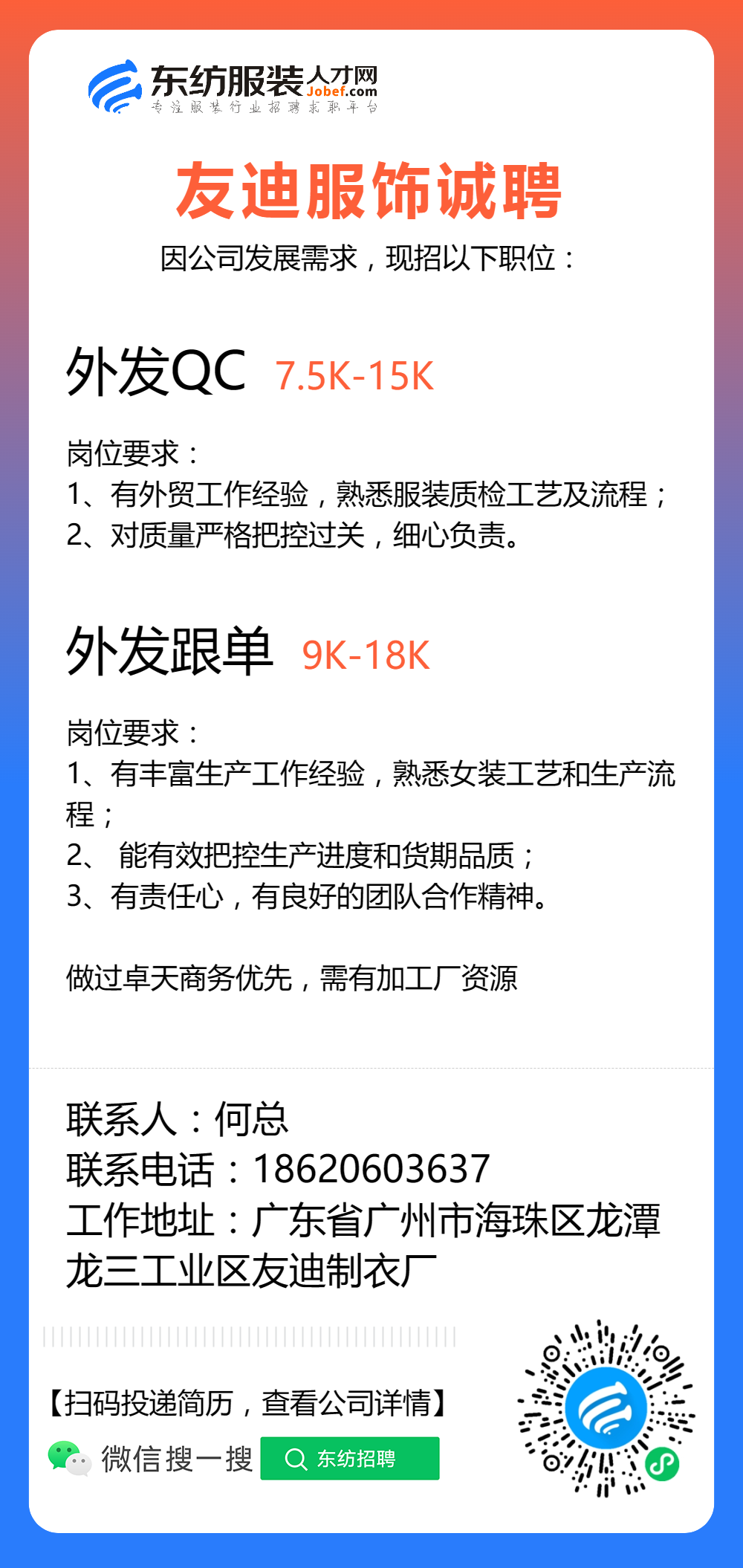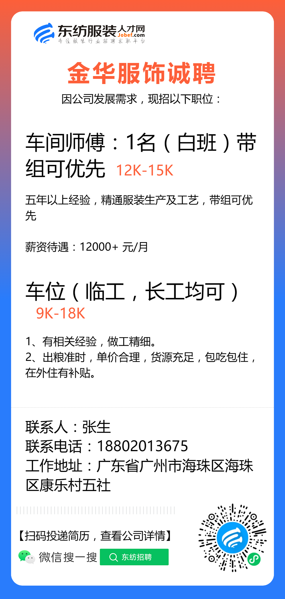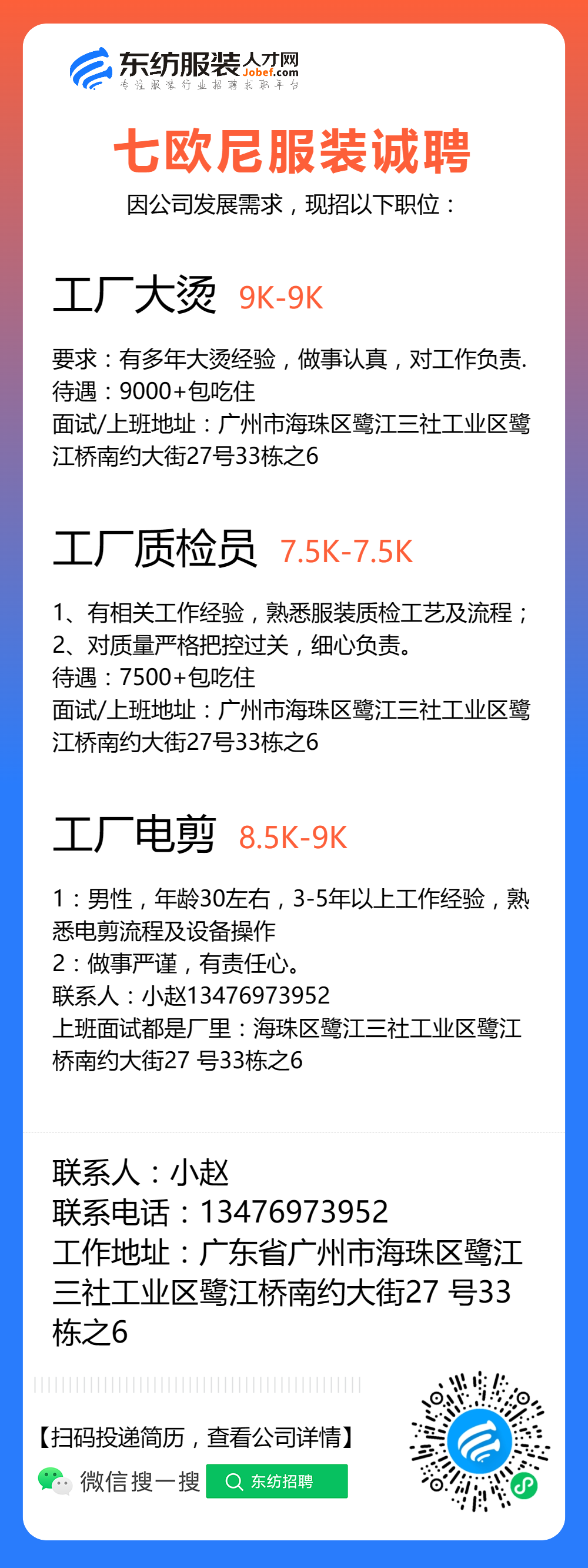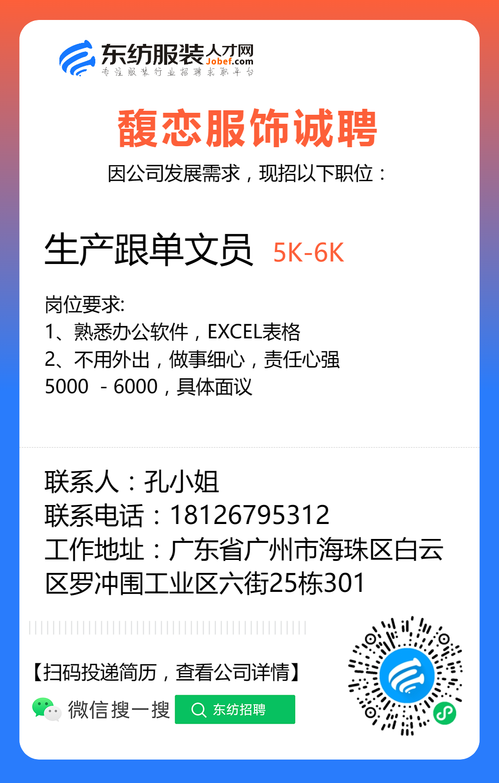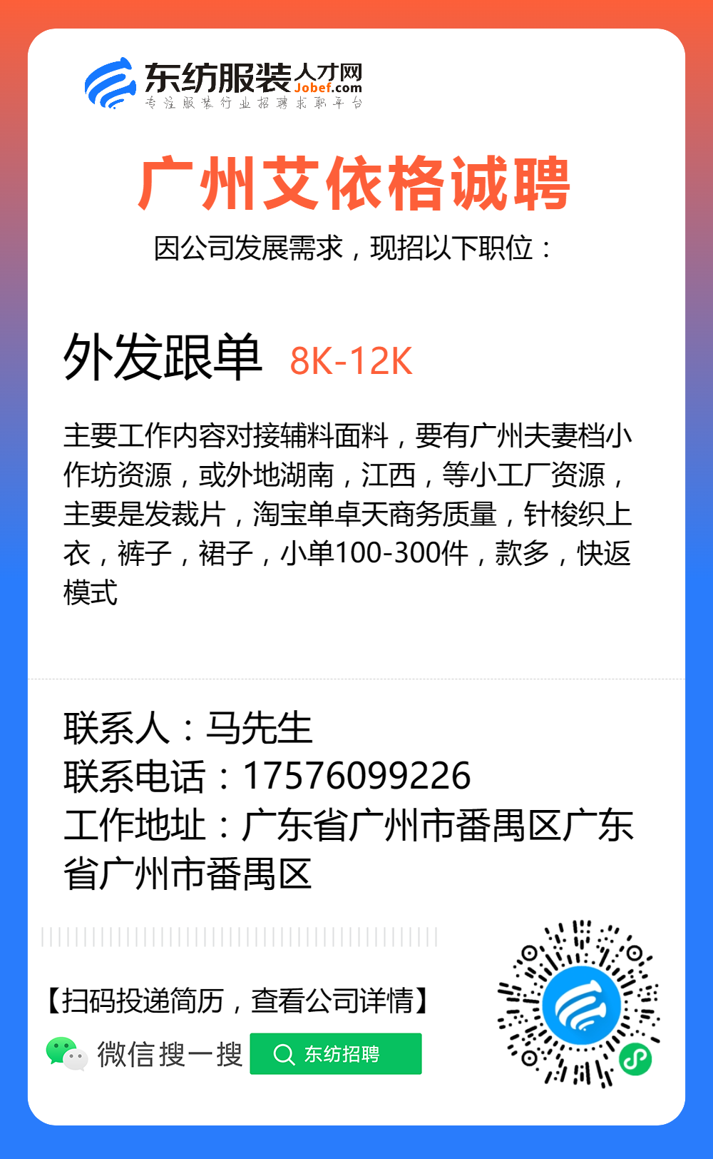 服装招聘·工厂类丨8. 12 号,跟单、采购、车位、裁床、尾部……