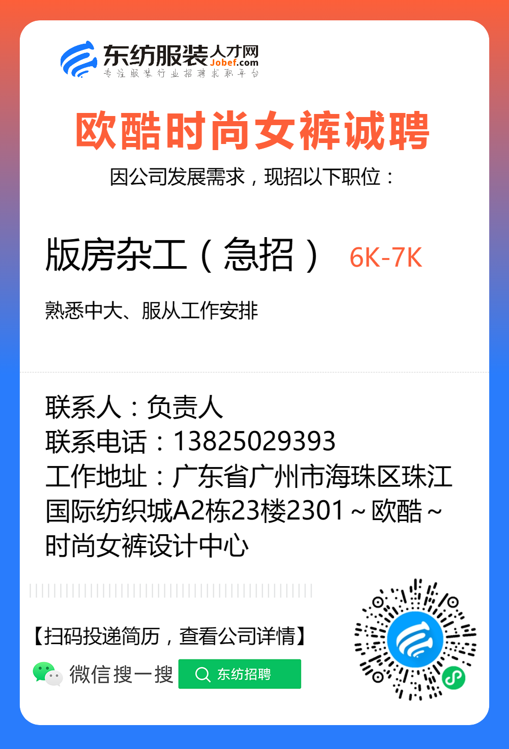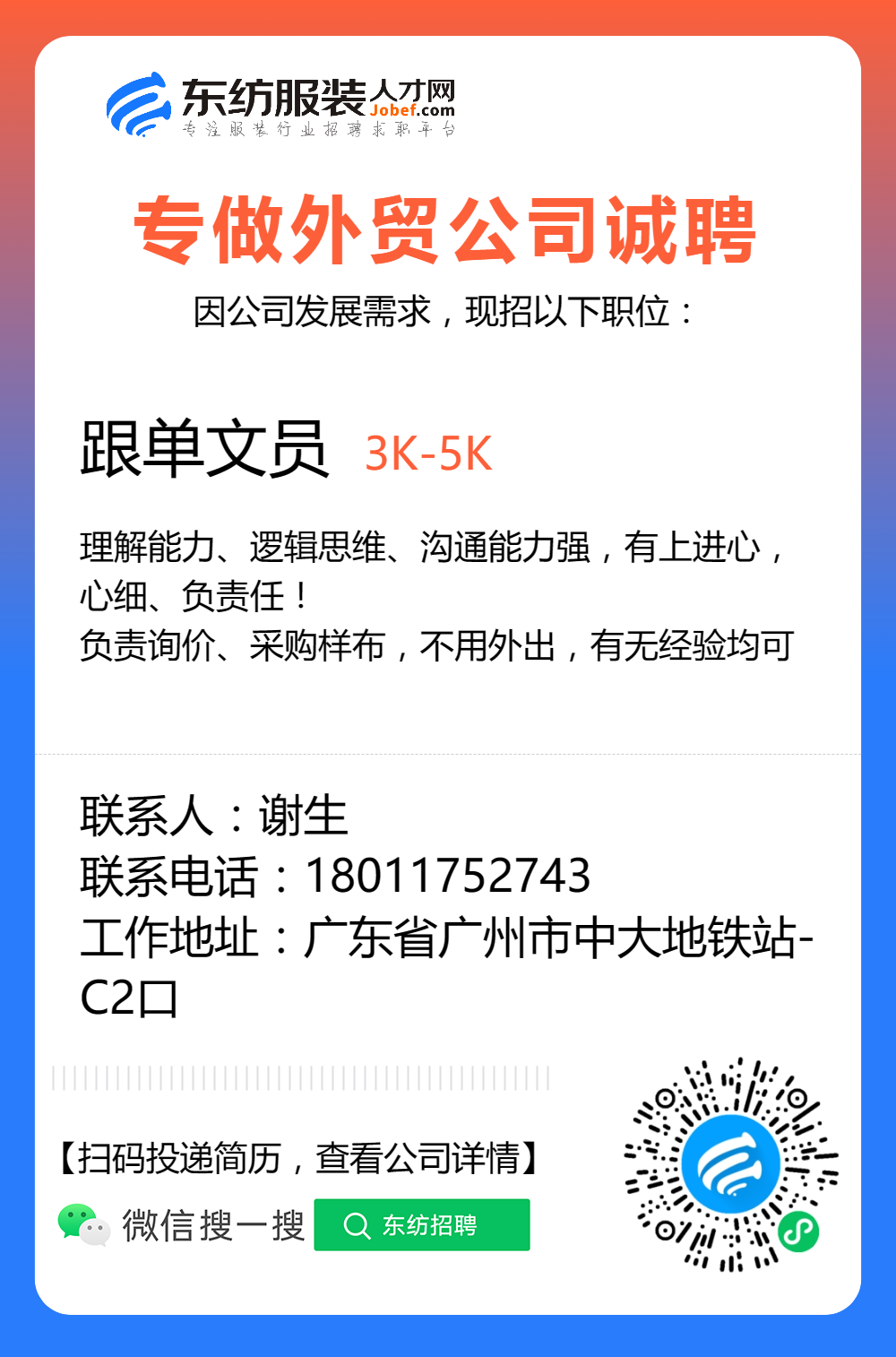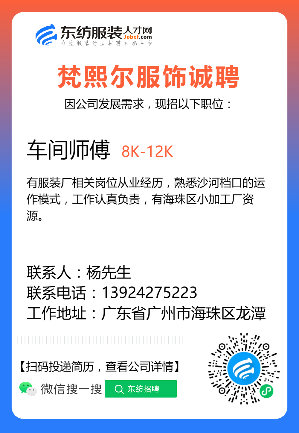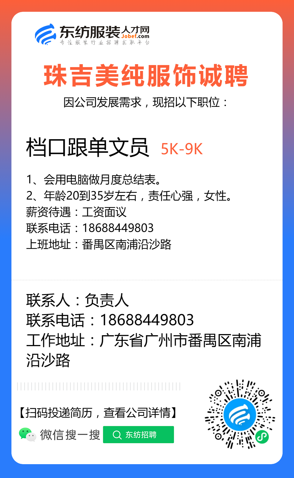 服装招聘·工厂类丨8. 12 号,跟单、采购、车位、裁床、尾部……