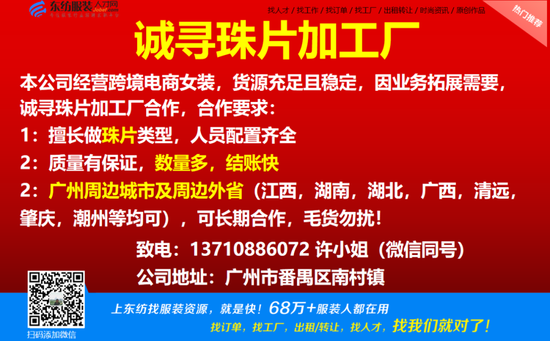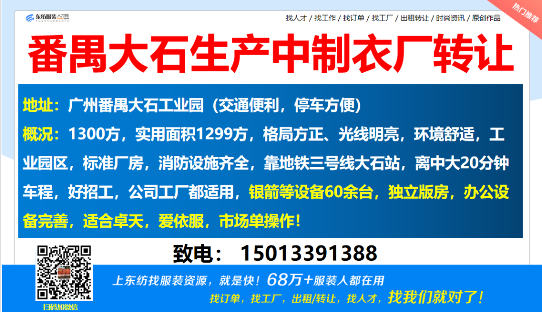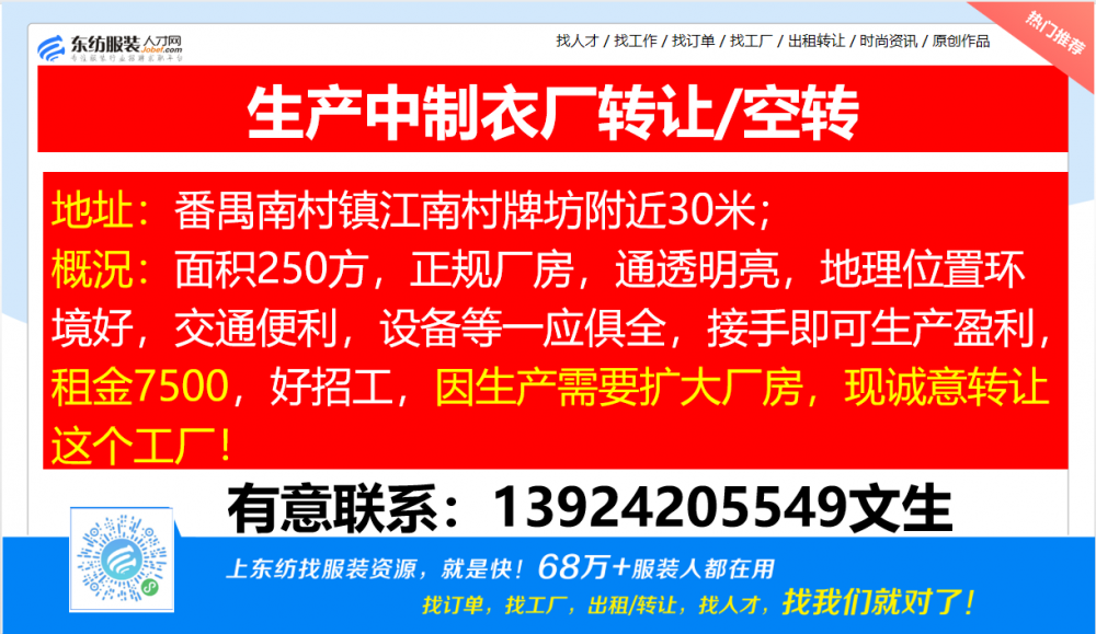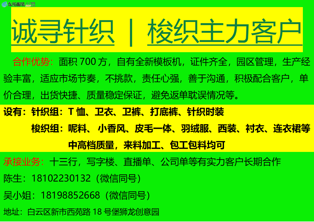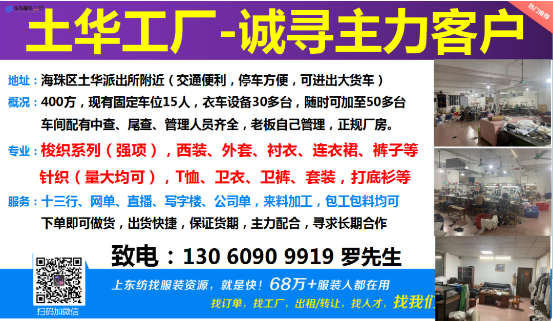 服装·诚寻客户丨8. 12 号,找订单/找工厂/出租/转让信息