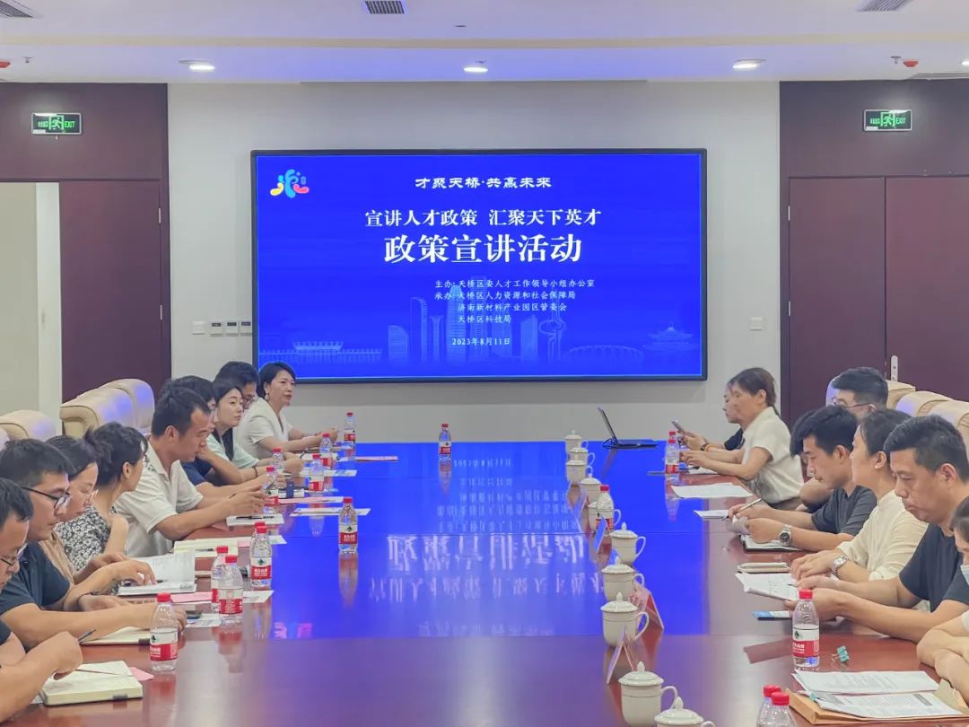 为持续扩大济南市人才政策“双30条”知晓度,积极营造尊才、重才、敬才、爱才浓厚氛围,按照“海右人才政策集中宣传月”活动部署,8月11日下午,济南新材料产业园区联合天桥区人社局组织举办海右人才政策宣讲活动。市人社局宣讲团第五组组长、济南市人才服务中心规划引进部部长李文利,天桥区公共就业和人才服务中心,园区投资促进局,30余家园区高企、专精特新企业相关负责人及重点人才参加活动。