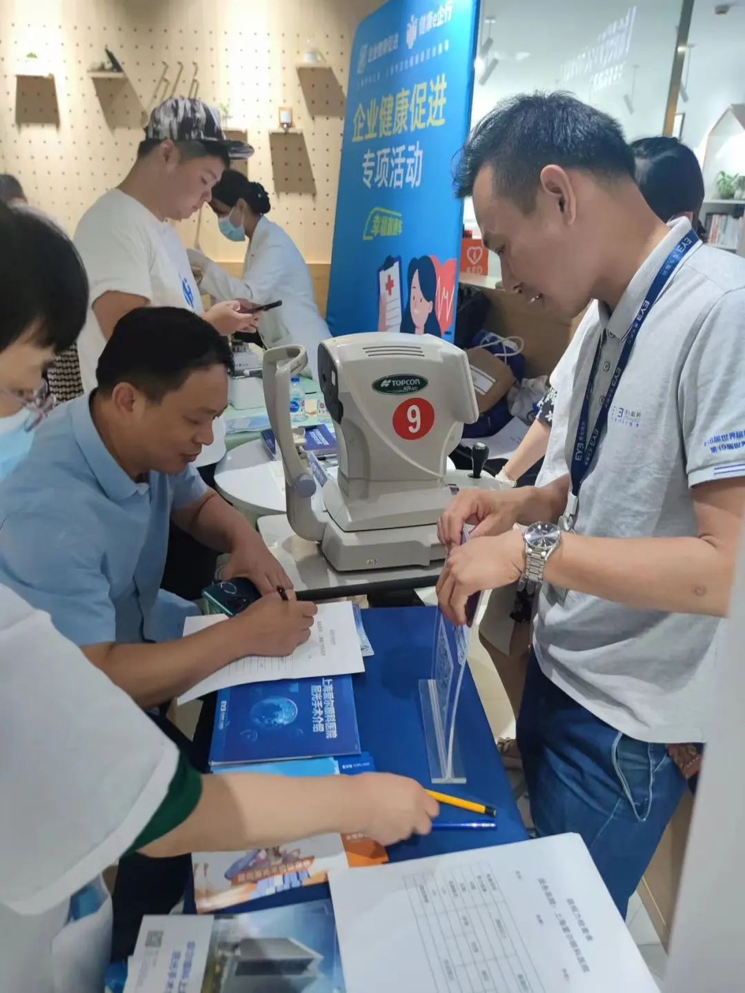 医务人员有条不紊地先为员工们进行了眼健康检查,项目包括裸眼视力检查、电脑验光、干眼SPA体验等,对需要治疗的员工详细讲解病理,并针对不同情况给予了相应的治疗方法和建议。