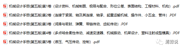 《机械设计手册》第五版共5卷,涵盖了机械常规设计的所有内容。其中第1卷包括一般设计资料,机械制图、极限与配合、形状和位置公差及表面结构,常用机械工程材料,机构;第2卷包括连接与紧固,轴及其连接,轴承,起重运输机械零部件,操作件、小五金及管件;第3卷包括润滑与密封,弹簧,螺旋传动、摩擦轮传动,带、链传动,齿轮传动;第4卷包括多点啮合柔性传动,减速器、变速器,常用电机、电器及电动(液)推杆与升降机,机械振动的控制及利用,机架设计,塑料制品与塑料注射成型模具设计;第5卷包括液压传动,液压控制,气压传动等。
