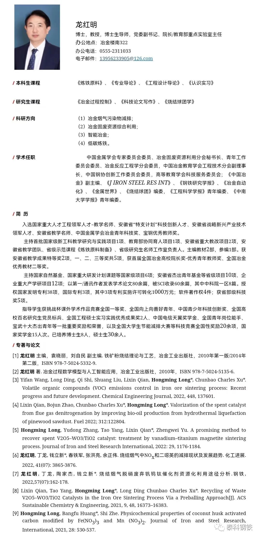 近日,官网显示,传统冶金强校安徽工业大学,冶金工程学院迎来新院长,龙红明已任冶金工程学院党委副书记、院长,此前院长为王海川教授。