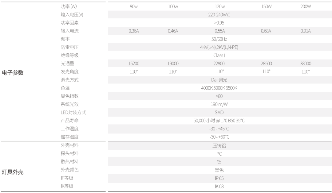 | 超高光效达到190LM/W | 调光方式: DALI调光 |
