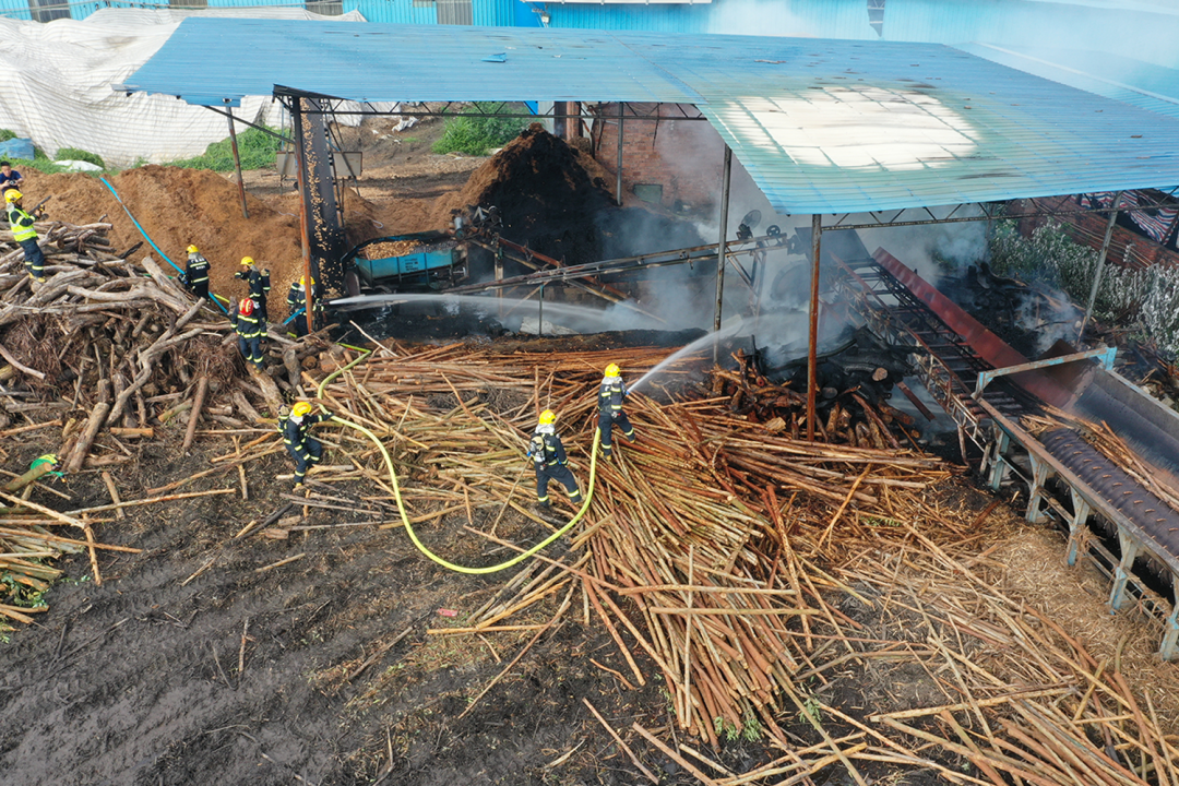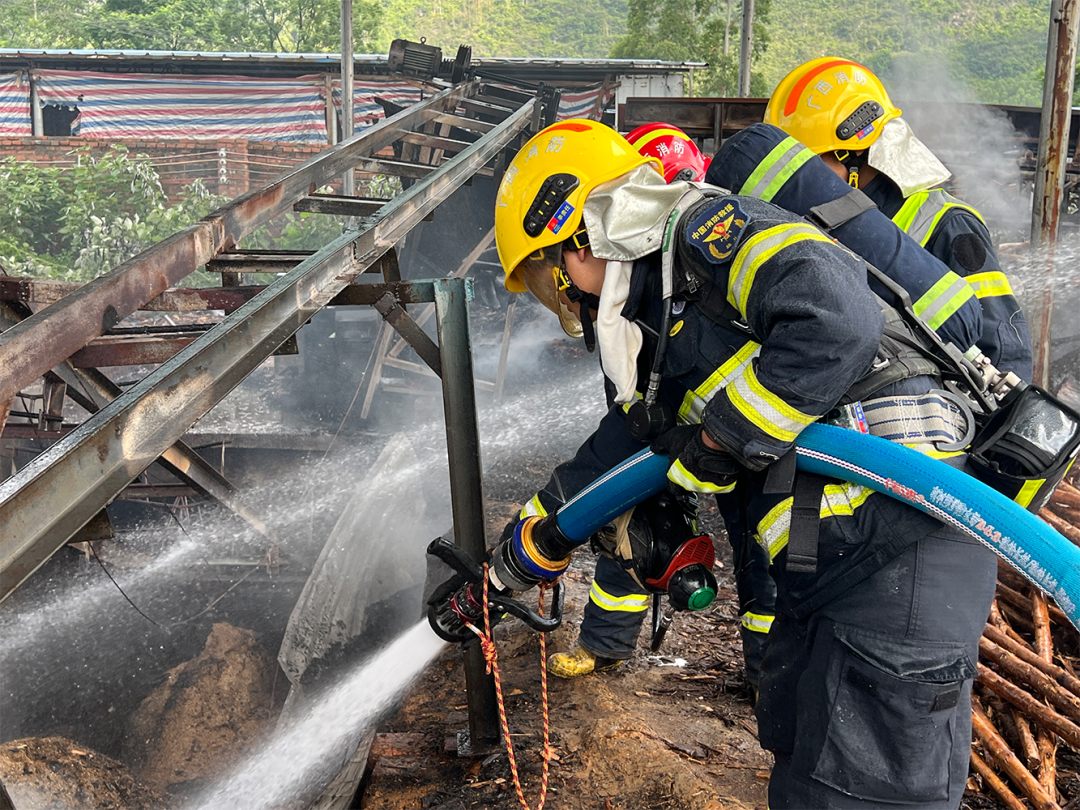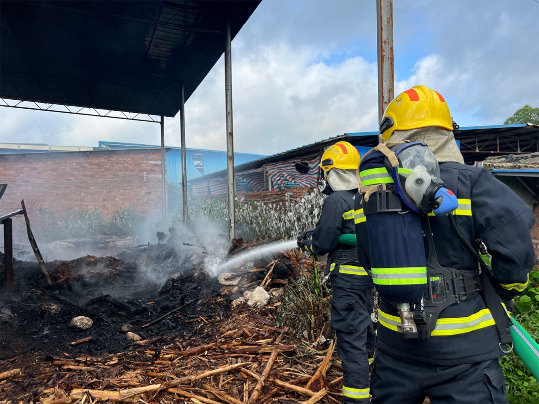 8时16分,消防员到达现场,该木材加工作坊为一个露天简易搭建的彩钢棚,起火物为堆置在钢棚下的已经粉碎的木屑和部分木头堆垛,火势正处于初步燃烧阶段,还未大面积蔓延,经询问了解得知火场里面无人员被困,加工设备已经断电。