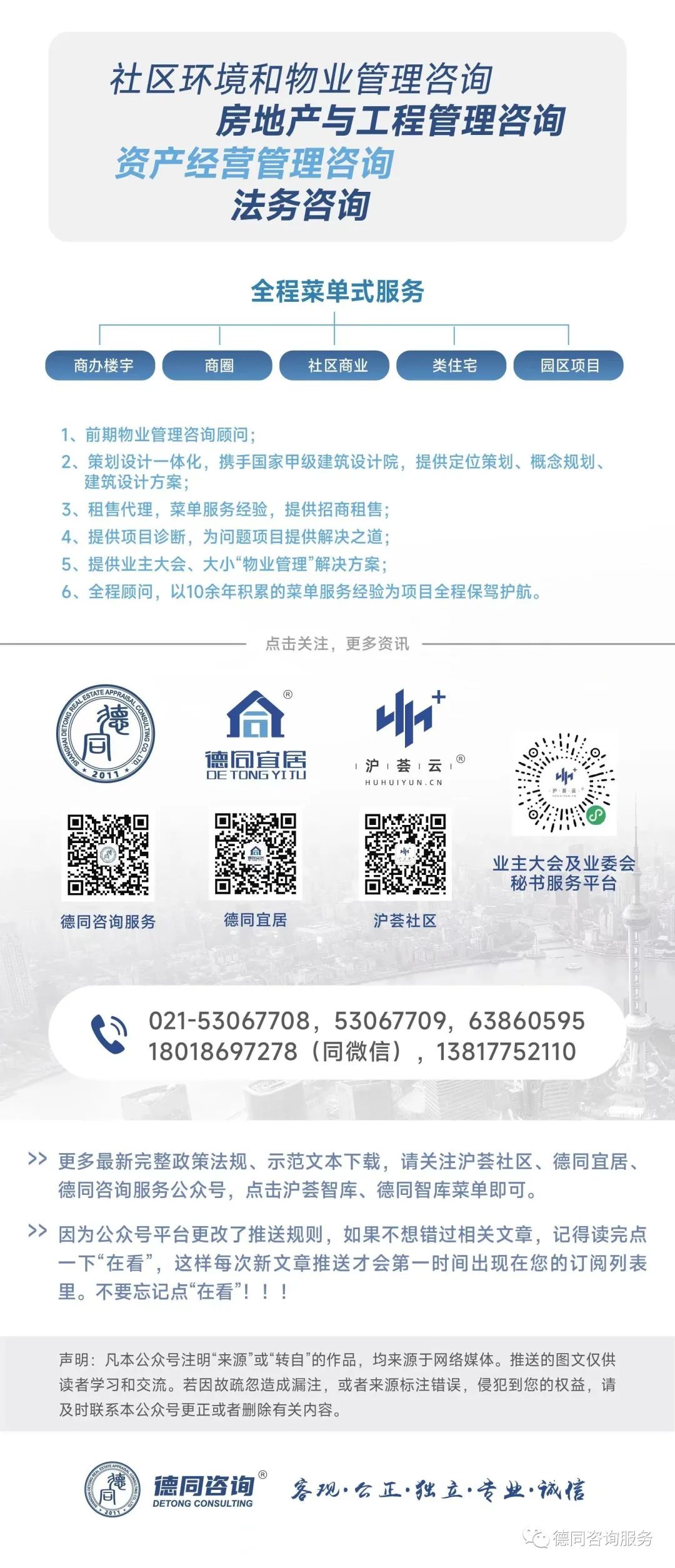 欢迎来电德同咨询各项业务:021-53067708,53067709,13817752110,18018697278(同微信)最新相关政策法规、技术标准规范、示范文本关注本号后即可查阅、下载、运用。