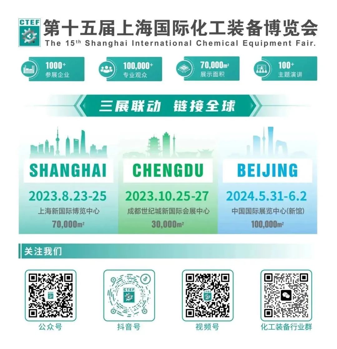 第十五届上海国际化工装备博览会将于2023年8月23-25日在上海新国际博览中心举办。合肥华运机械制造有限公司将携工业软管泵系列;分散、研磨、乳化设备系列等展品亮相,展位号:W2312。期待各位莅临参观洽谈!