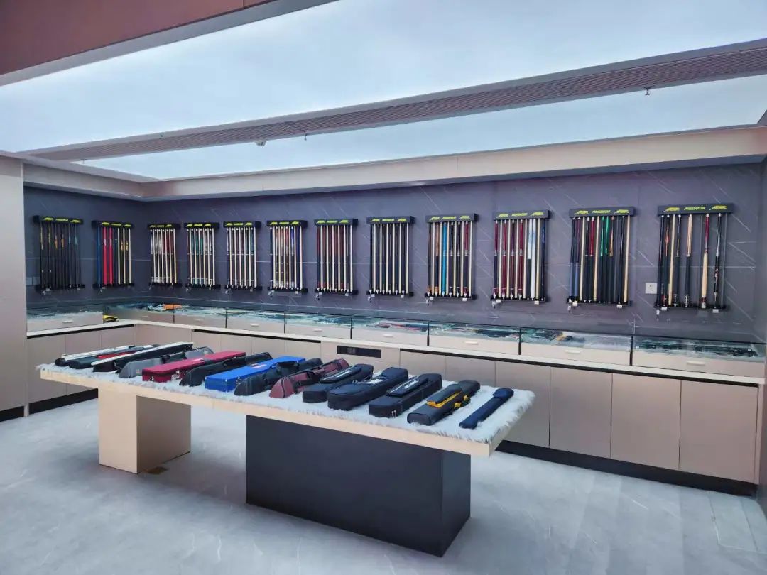 广州店在配置上除了设有璟点品牌的球台、球杆、配件外,还同时拥有一个维修室、楼上楼下各一个直播间,最为特色的是张总准备在二层的位置设立精品二手杆专区,这正是珠海店没有涉及到的业务。