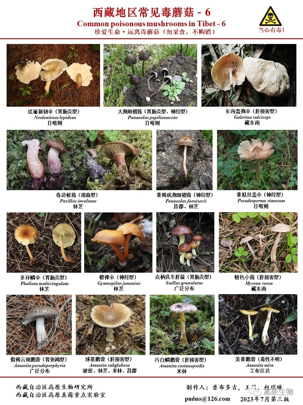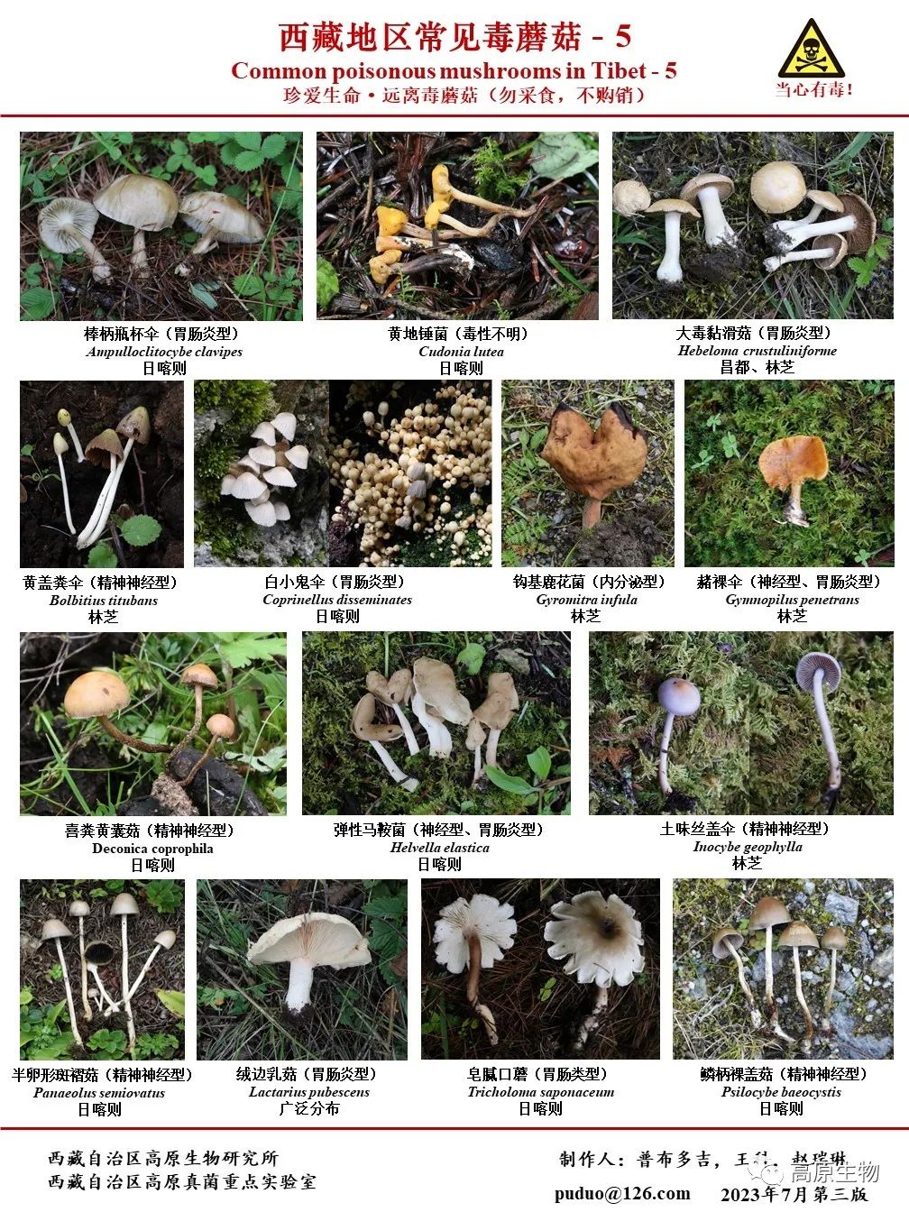 对西藏地区分布的毒蘑菇可导致6种不同类型的中毒: