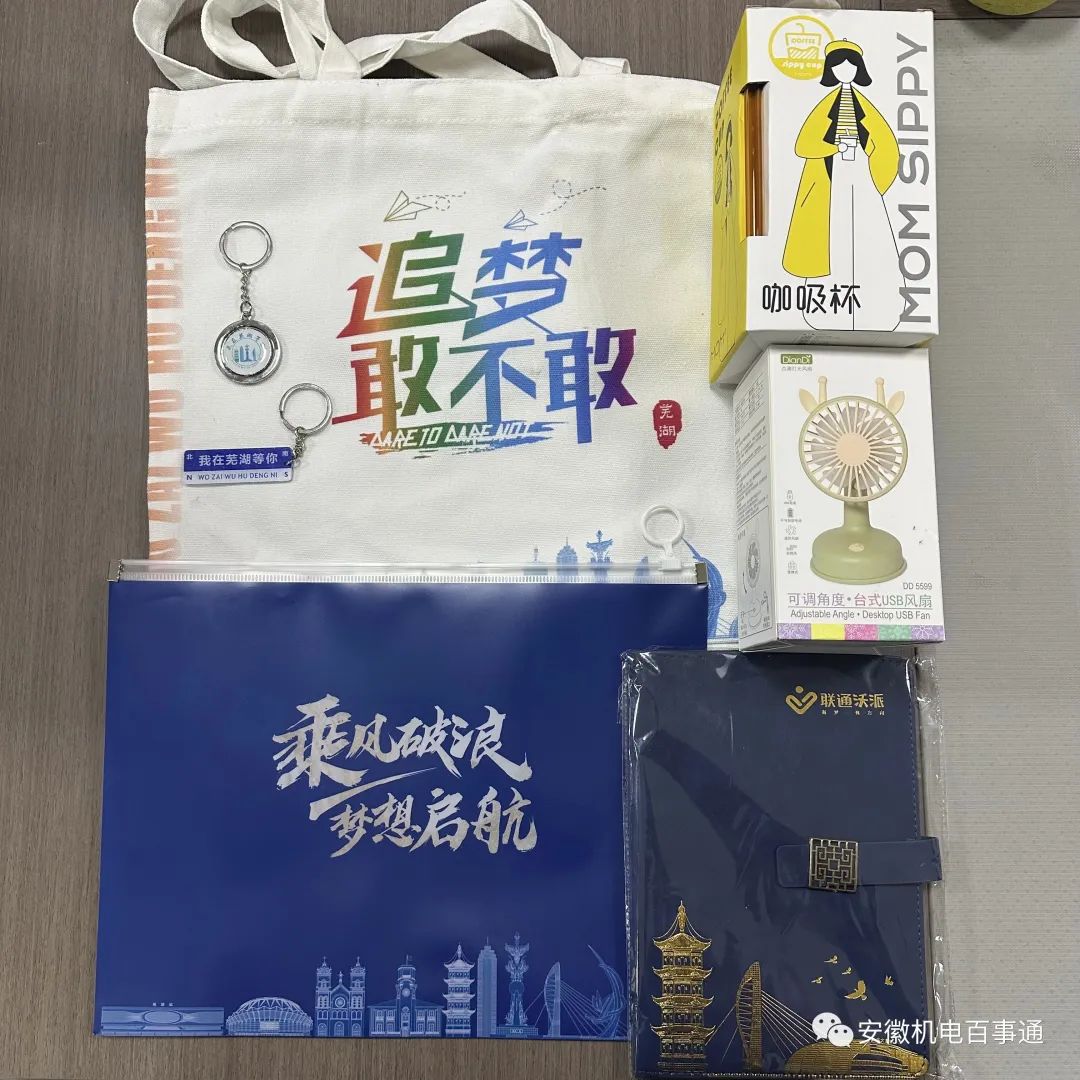 大礼包内含:两枚钥匙扣、帆布包、咖吸杯、小风扇、文件袋、笔记本、校园必备手机卡一张(联通制式)