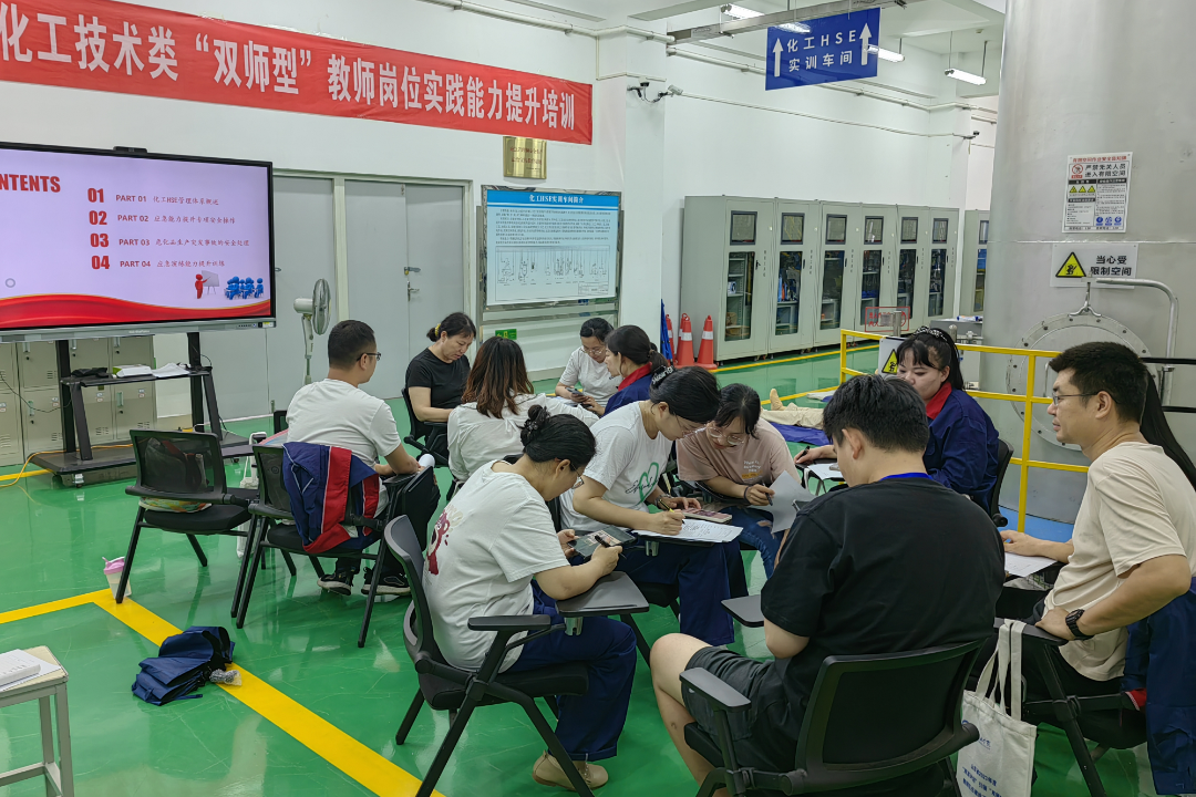 开班仪式上,学院领导李瑞昌致欢迎辞,代表学院向全体参训教师表示热烈欢迎,并介绍了学院的基本情况、发展历史、师资队伍建设情况、近五年发展建设取得的标志性成果及学院开展“双师型”教师培训工作的安排,同时对参训教师提出殷切期望,希望各位学员专心学习、勤练技能、学有所获、学以致用,此外,他也表示希望学员们对本次培训工作和学院未来的发展提供宝贵意见。本培训项目依托学院校企共建的国家级“双师型”教师培养培训基地、生产性实训基地,采取“专题讲座、现场观摩、交流研讨、实践操作”等培训模式,邀请校内专业领域知名专家开展专题讲座,企业经历丰富的骨干教师组织开展典型化工产品工艺装置实践操作,全国职业院校技能大赛优秀指导教师结合赛项规程和技术要求进行HSE安全实操、化工生产技术精馏操作以及化学实验技术操作培训,并在山东滨安科技有限公司进行了实地考察,助力参训教师开拓职业教育教学理念的同时,有效地提升教师岗位实践操作能力以及岗课赛证融合能力,实现化工技术领域“双师型”教师岗位实践能力的大幅提升,为职业教育发展汇聚更大力量。培训安排了集中授课研讨、学员交流研讨、实践操作和现场观摩等活动,通过课程学习、经验分享、现场观摩和实践操作,增加了学员的体验感和沉浸感,提升了学员学习交流的针对性和互动性,学习效果显著。为保障本次培训项目的顺利开展,学院成立了培训工作小组,高标准严要求扎实推进培训课程组织、教学过程督导、食宿等各项后勤服务保障工作。培训期间,全体学员以饱满的学习热情,积极的学习态度,严肃的学习纪律,圆满完成了各项培训任务。下一步,学院将认真总结培训工作的经验和收获,并以此次培训为契机,继续做好山东省“双高计划”引领“双师型”教师队伍建设,为全市乃至全省职业教育发展汇聚更大力量。
