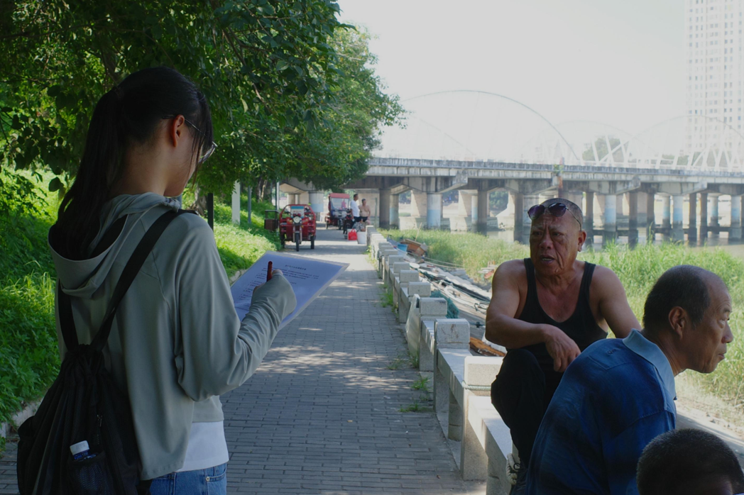 根据之前对河流状况的初步了解,实践团成员设计了合理的问卷,选择了人流较密集且具有代表性的北滨江公园河段展开了走访。同时,实践团在实践过程中也对游客、商户及当地居民的采访。