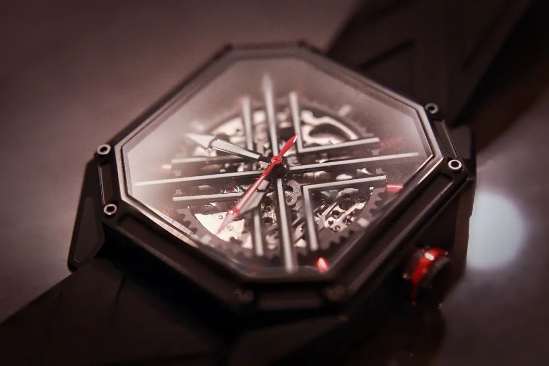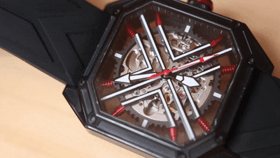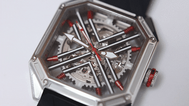 而这款全镂空机械表,从汽车的避震器得到灵感,将机械弹簧和气动弹簧双结合