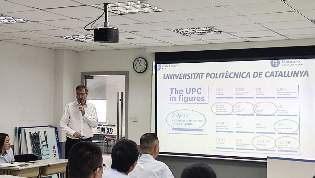 此前6月,西班牙加泰罗尼亚理工大学(UPC)水力机械研究所所长FRANCESC XAVIER ESCALER PUIGORIOL教授、水力机械故障诊断领域专家黄星星博士等多位国际知名专家、学者也受邀到访凯泉。其中,XAVIER教授为大家带来了大型机械动态特性测量、流动控制、叶片空化改善和破坏预警诊断等方面的知识。